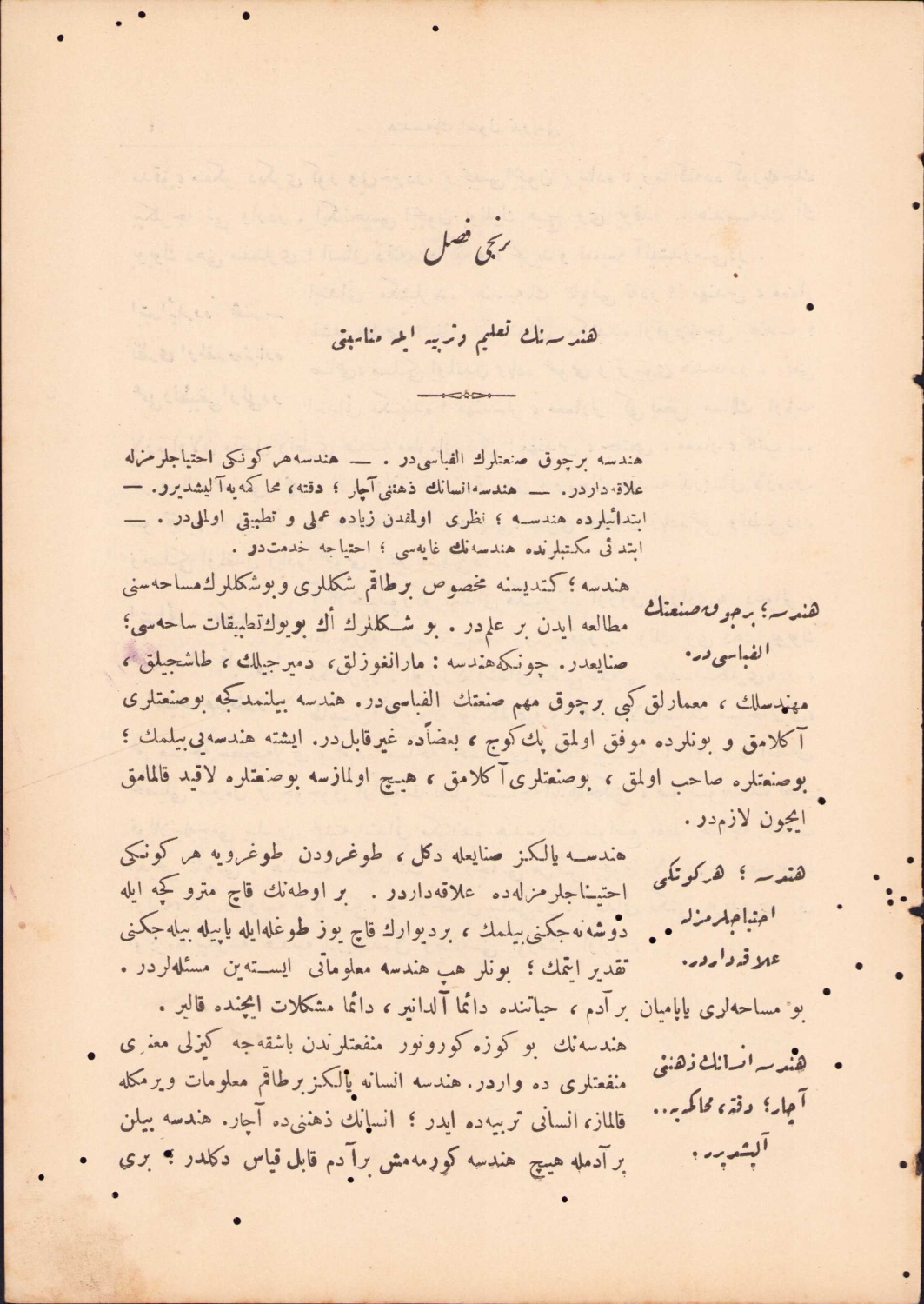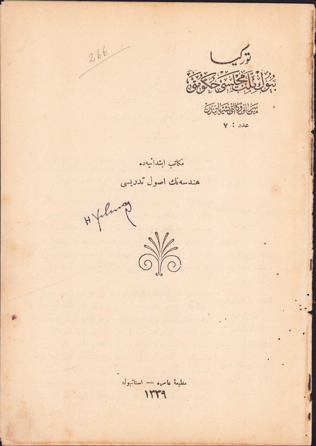 Türkiye Büyük Millet Meclisi Hükümeti antetli Mekatip-i İbtidaiyyede Hendesenin Usul Tedrisi kitabı, 1339, 12 sayfa, 15x23 cm