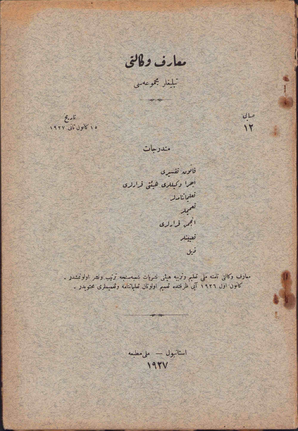 Osmanlıca Maarif Vekaleti Tebliğler Mecmuası, Milli Matbaa, İstanbul, 1927, 80 sayfa, 16x24 cm