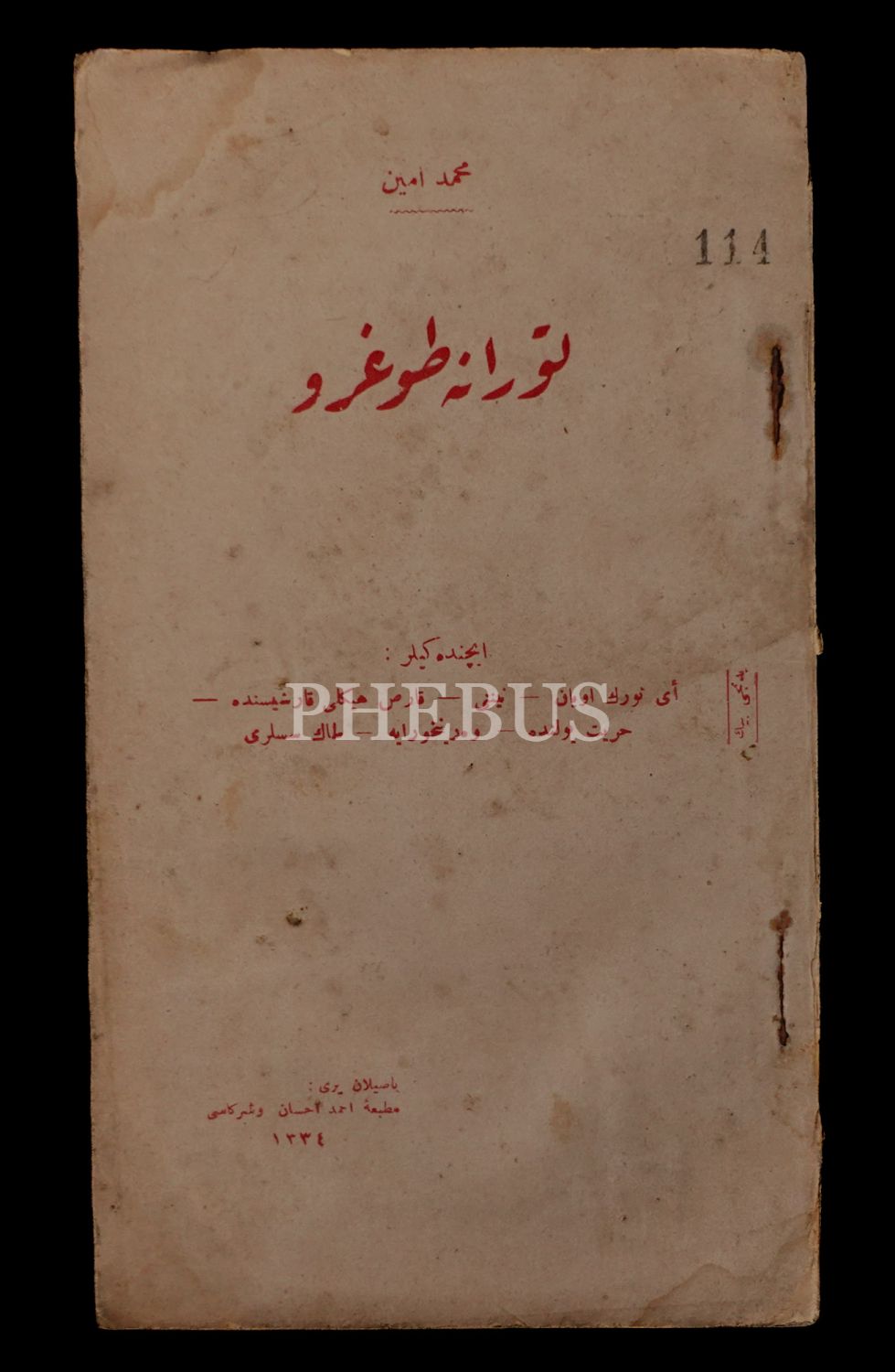 TURANA DOĞRU, Mehmed Emin (Yurdakul), 1334, Matbaa-i Ahmed İhsan ve Şürekası, 12x21 cm...