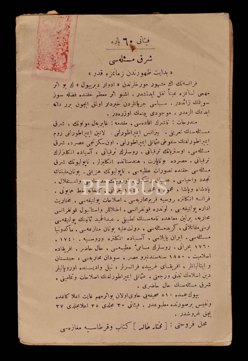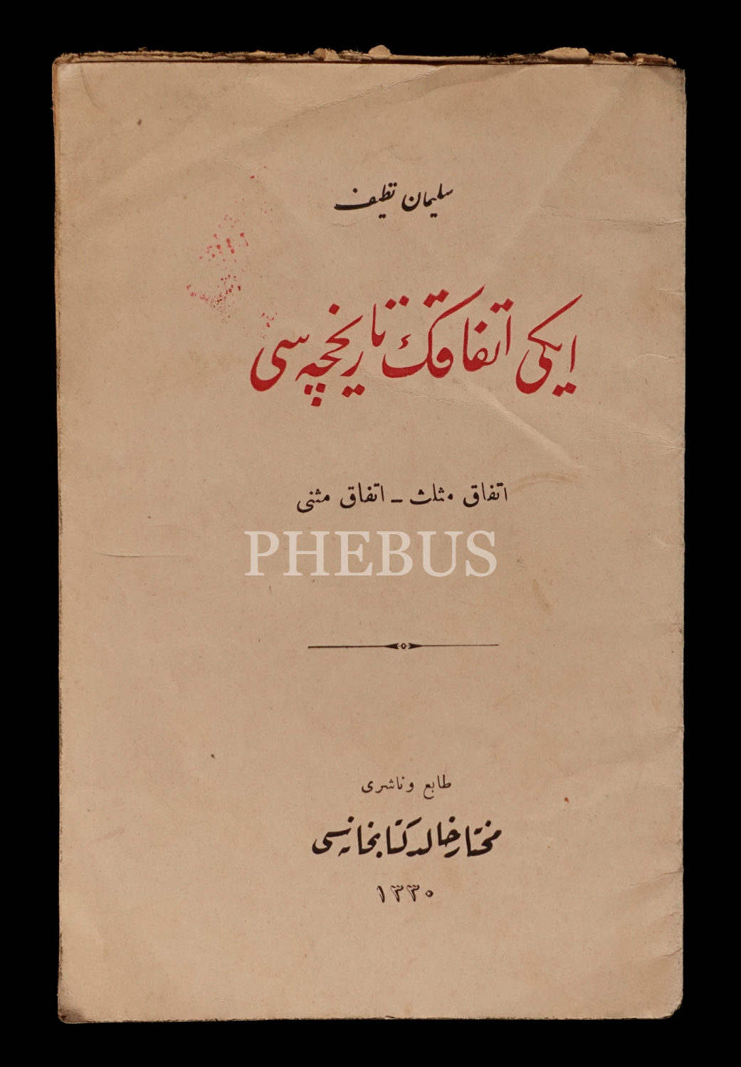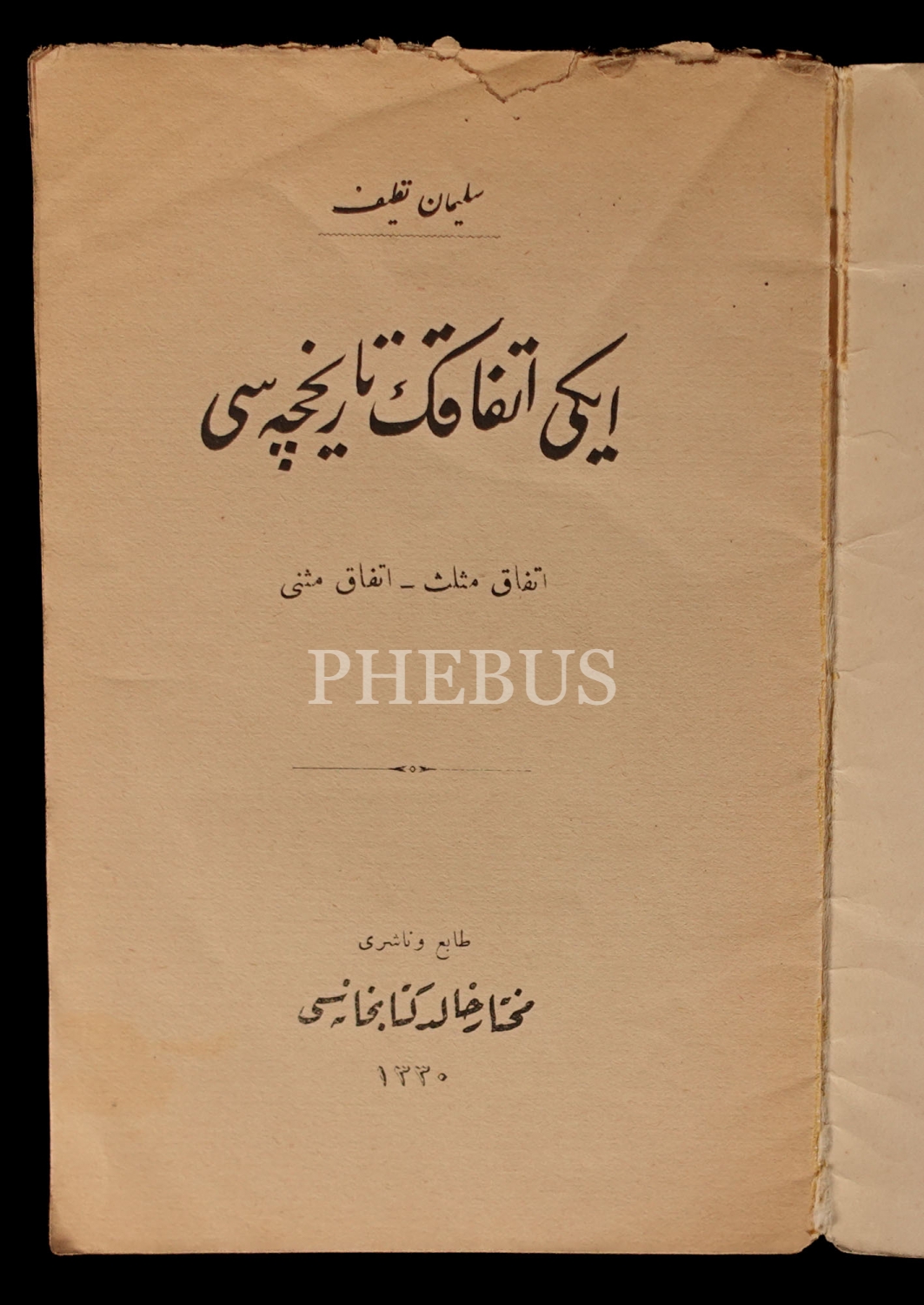 İKİ İTTİFAKIN TARİHÇESİ, Süleyman Nazif, 1330, Muhtar Halid Kitaphanesi, 16 sayfa, 12x18 cm...