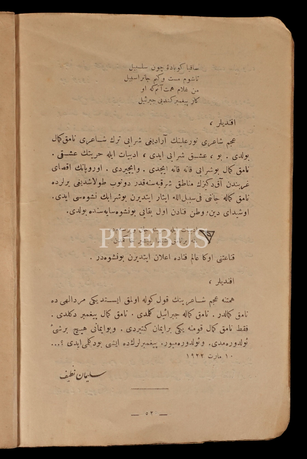 NAMIK KEMAL, Süleyman Nazif, 1922, İkdam Matbaası, 52 sayfa, 14x21 cm...