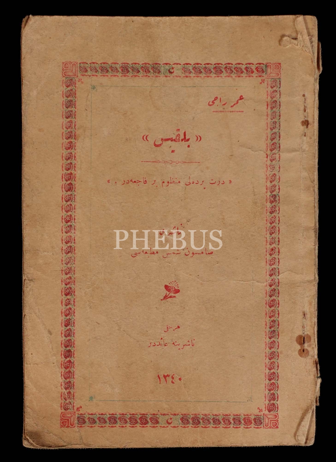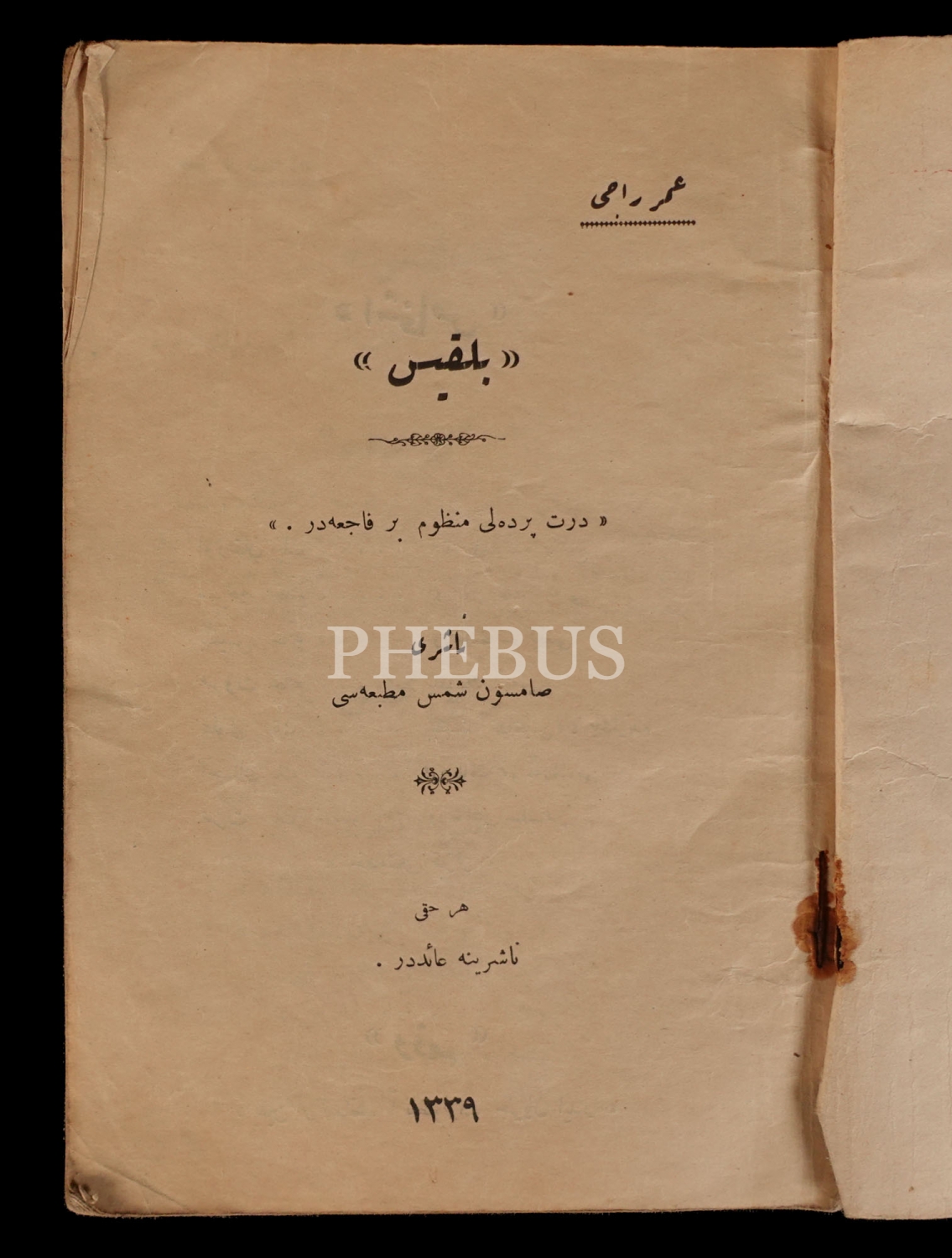 BELKIS (Dört perdeli manzum bir faciadır), Ömer Raci, 1340, Samsun Şems Matbaası, 72 sayfa, 13x18 cm...