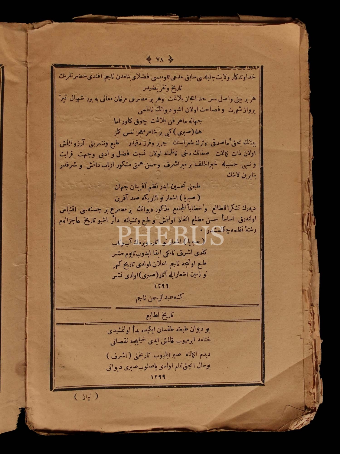 DİVAN-I SABRİ, Mehmed Emin Sabri Efendi, 1292, Hüdavendigâr Vilayet matbaası, 80 sayfa, 18x25 cm...