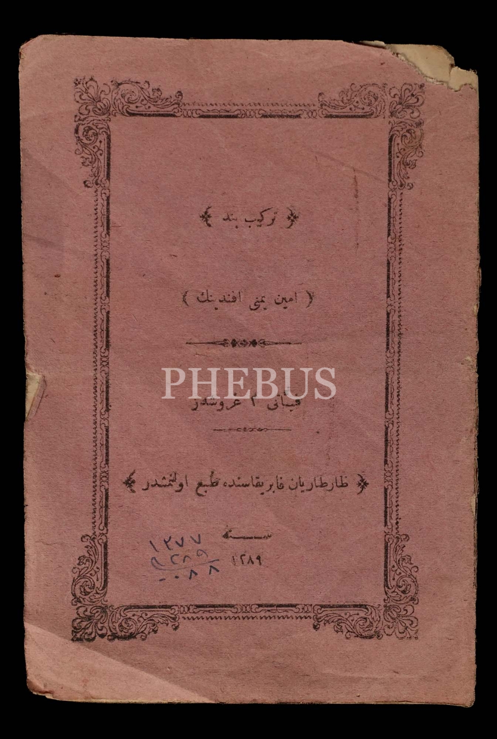 TERKİB-İ BEND, Emin Yümni Efendi, 1289, Zartaryan Fabrikası´nda tab olunmuştur, 16 sayfa, 12x17 cm...