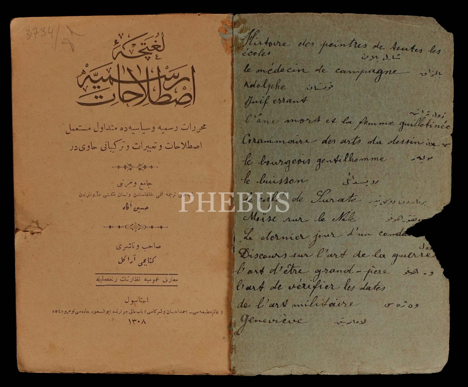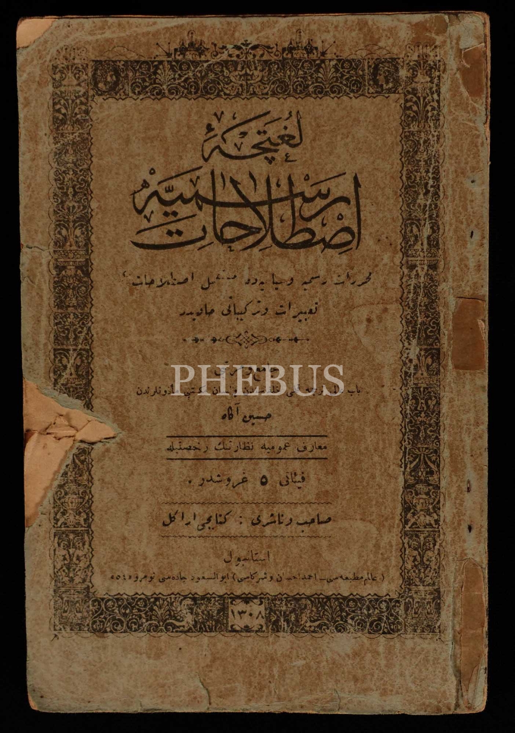 LUGATÇE-İ ISTILAHAT-I RESMİYE, Hüseyin Agâh, 1308, Kitabcı Arakel, 74 sayfa, 11x17 cm...
