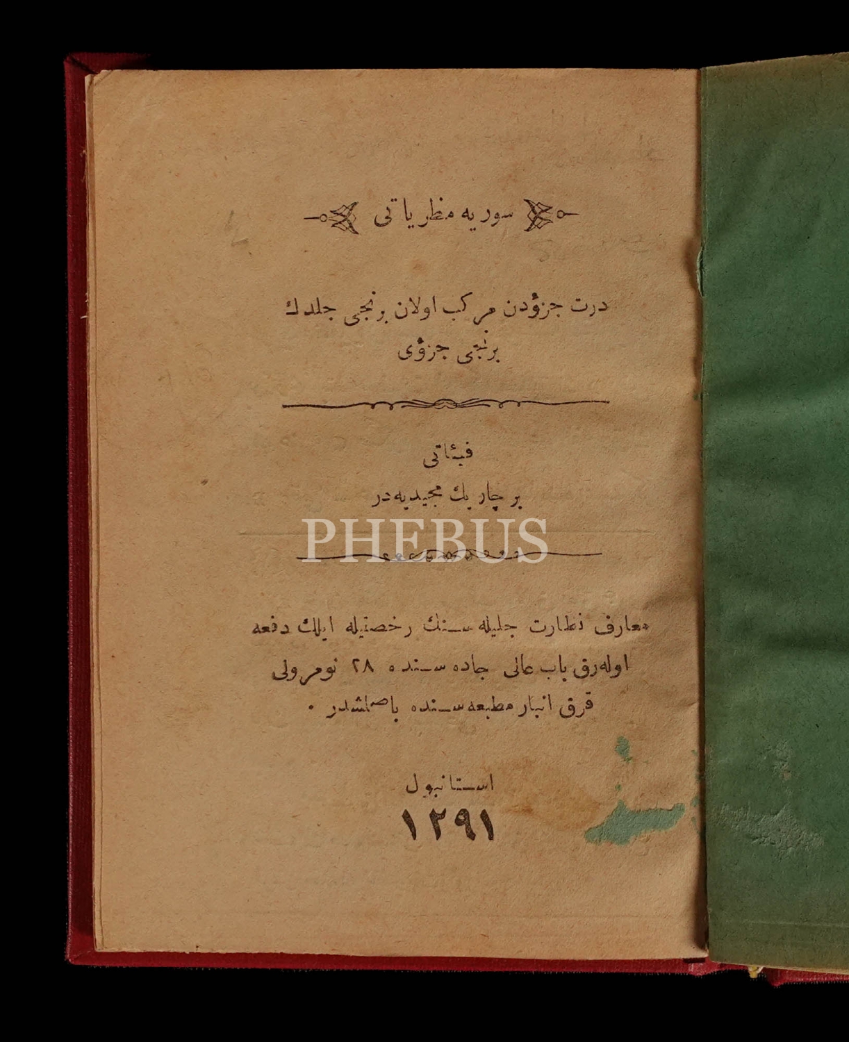 SURİYE MUZAFFERİYATI (3 Cüz), Muhsin, 1291, Kırk Anbar Matbaası, 99 sayfa, 13x16 cm..