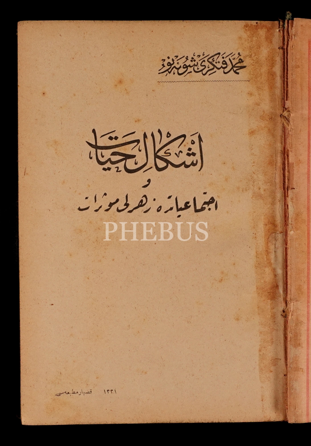 EŞKAL-İ HAYAT VE İCTİMAİYATDA ZEHİRLİ MÜESSİRAT, Mehmed Fetgeri Şoenu, 1331, Kasbar Matbaası, 288 sayfa, 13x18 cm...