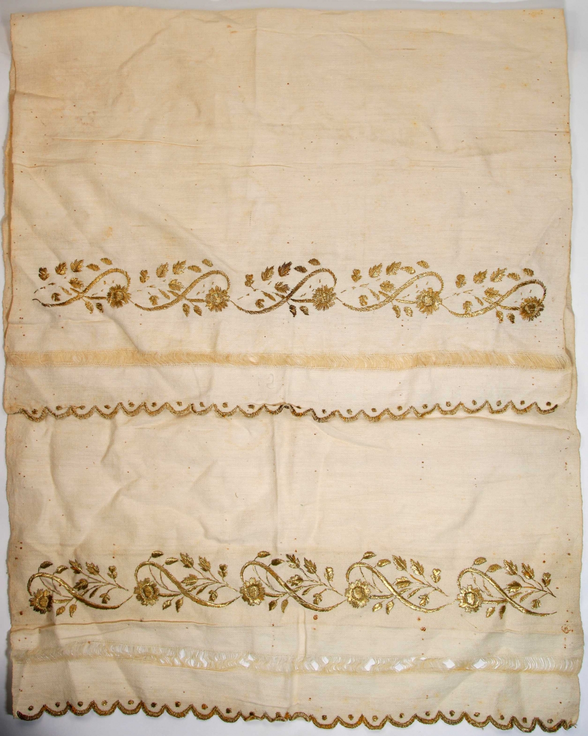 Eski tel kırma işlemeli çiçek motifli havlu, 58x117 cm