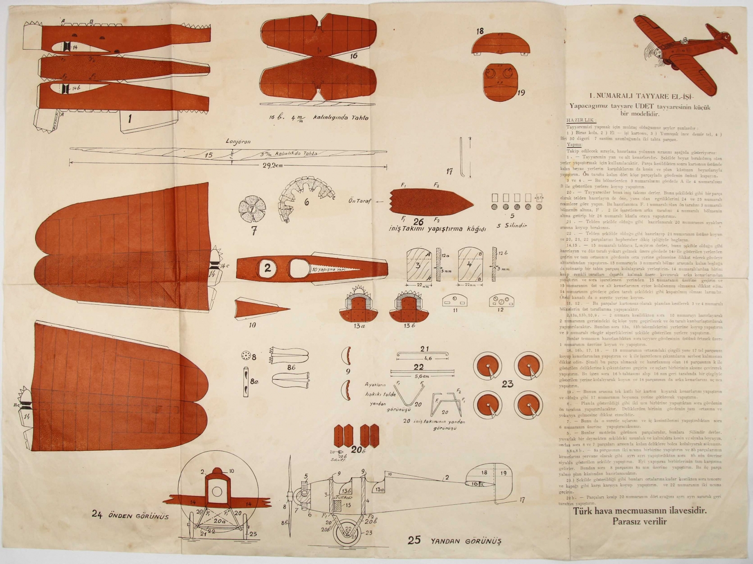 Türk hava mecmuasının ilavesi olan 1. Numaralı Tayyare El-işi tanıtım posteri, 68x50 cm