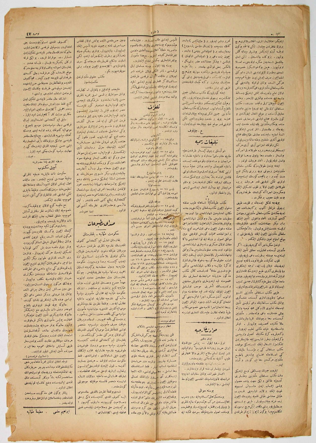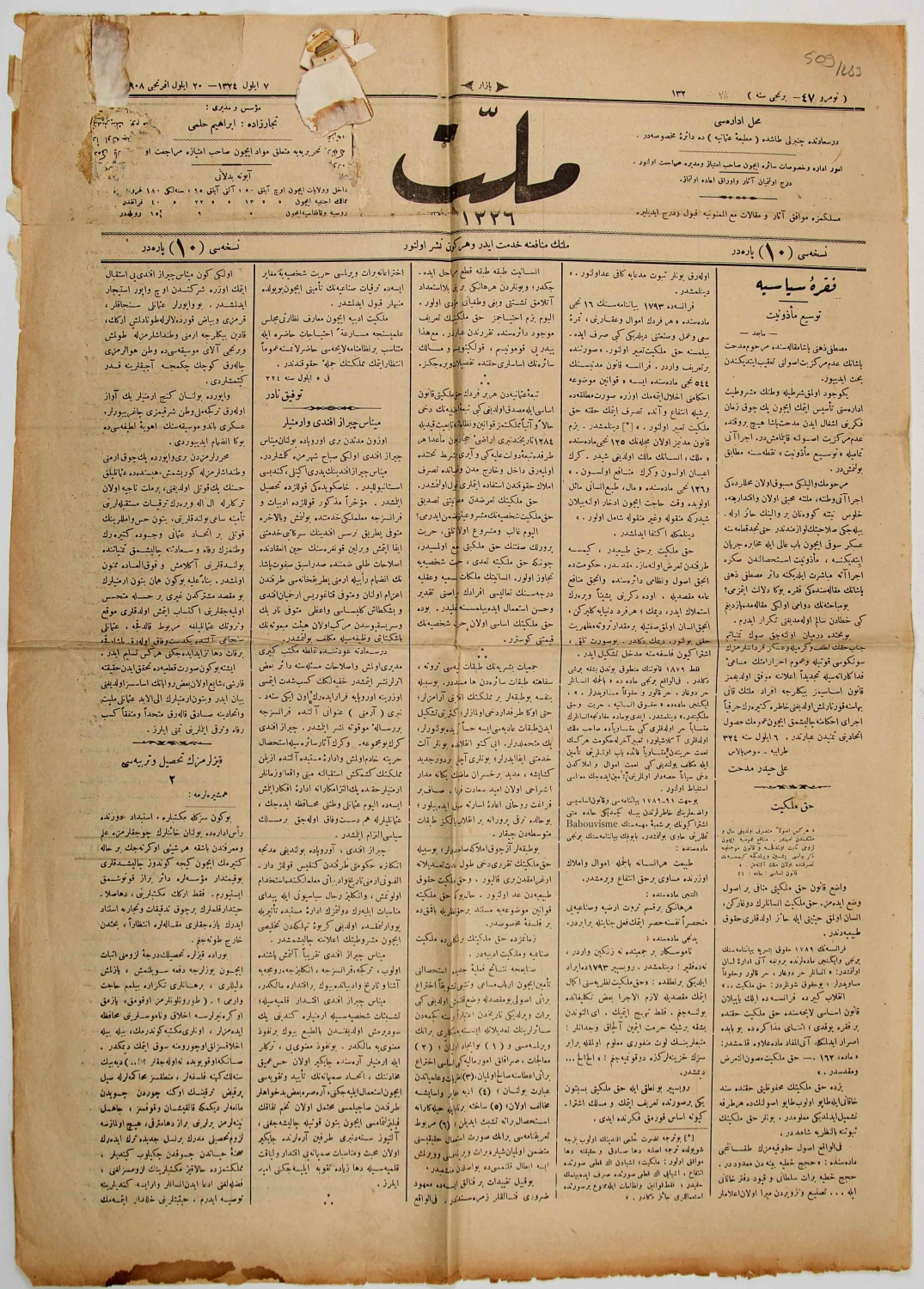 Osmanlıca Milliyet gazetesi, 1324, haliyle, 4 sayfa, 40x56 cm