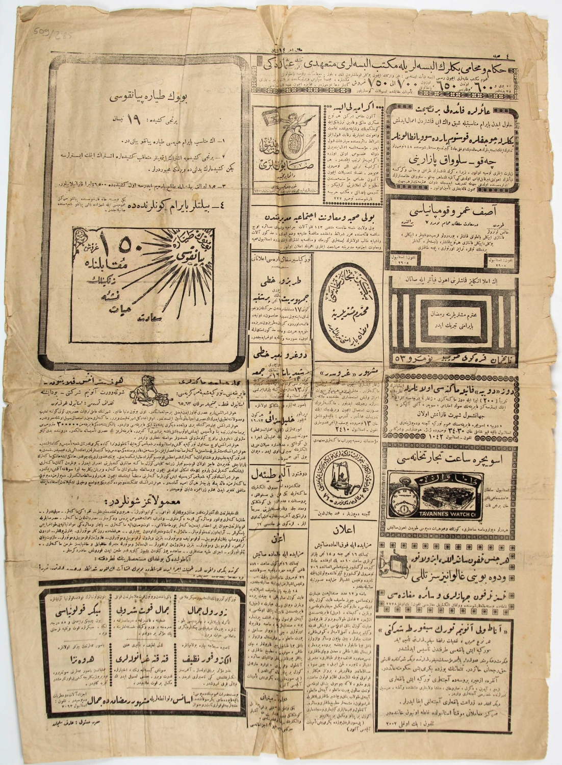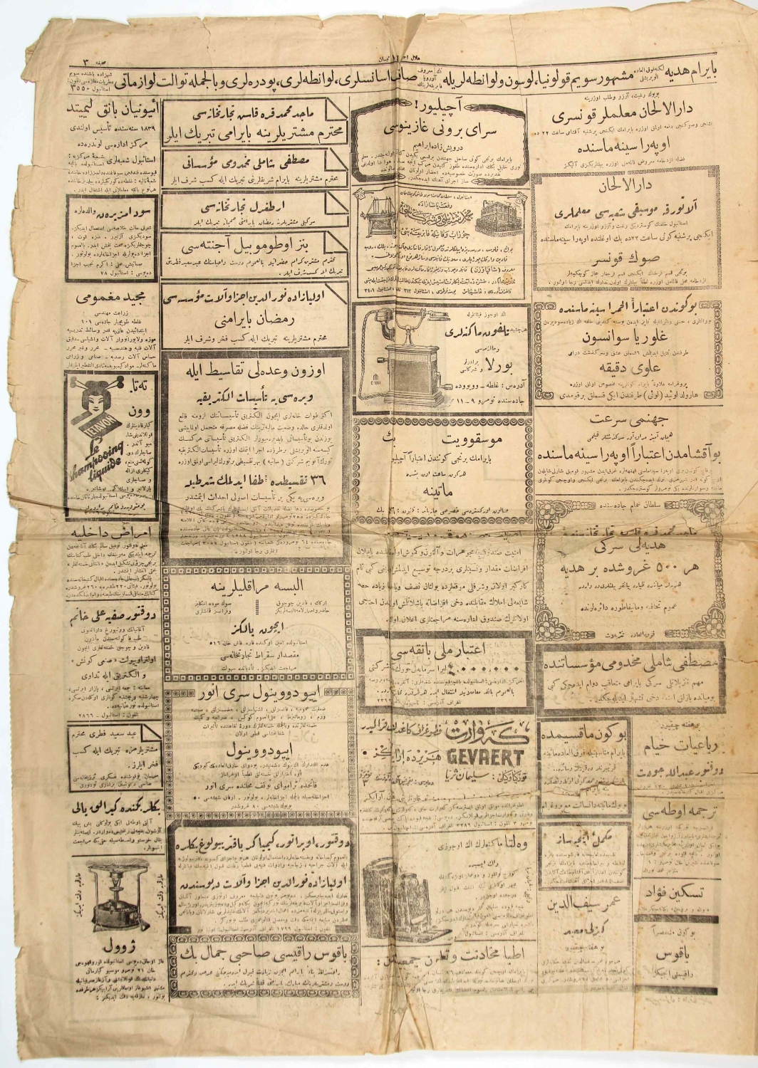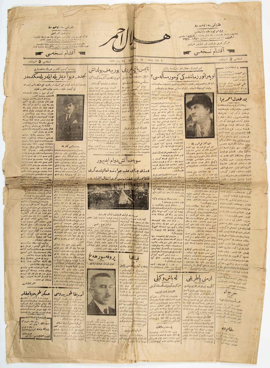 Osmanlıca Hilal-i Ahmer gazetesi, 1926, manşetler: "Operatör Zamanındaki Kömür Meselesi?", "Suriyedeki Ateş Devam Ediyor", reklamlı, haliyle, 4 sayfa, 45x60 cm