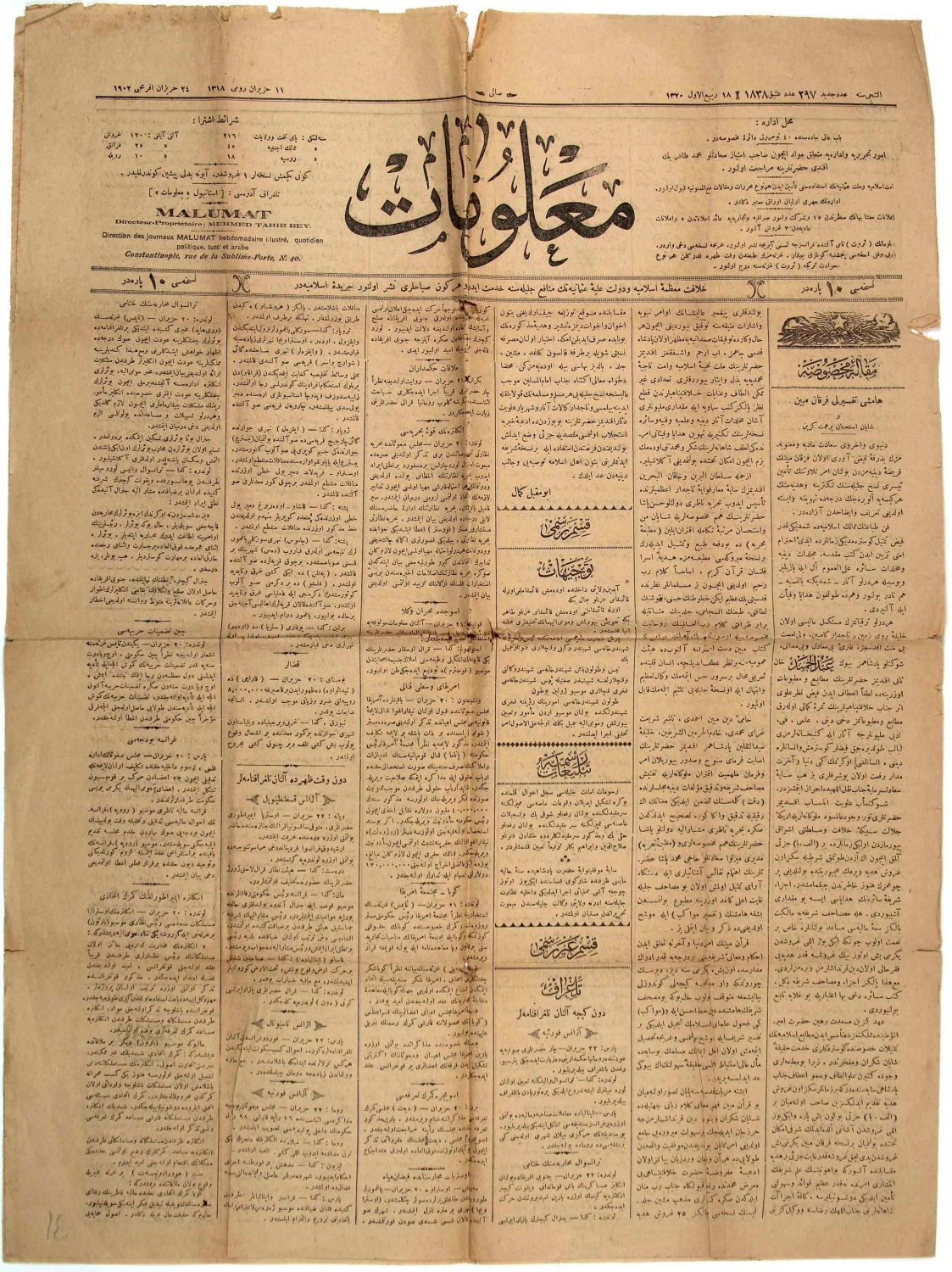 Osmanlıca Malumat gazetesi, 1906, haliyle, 48x60 cm