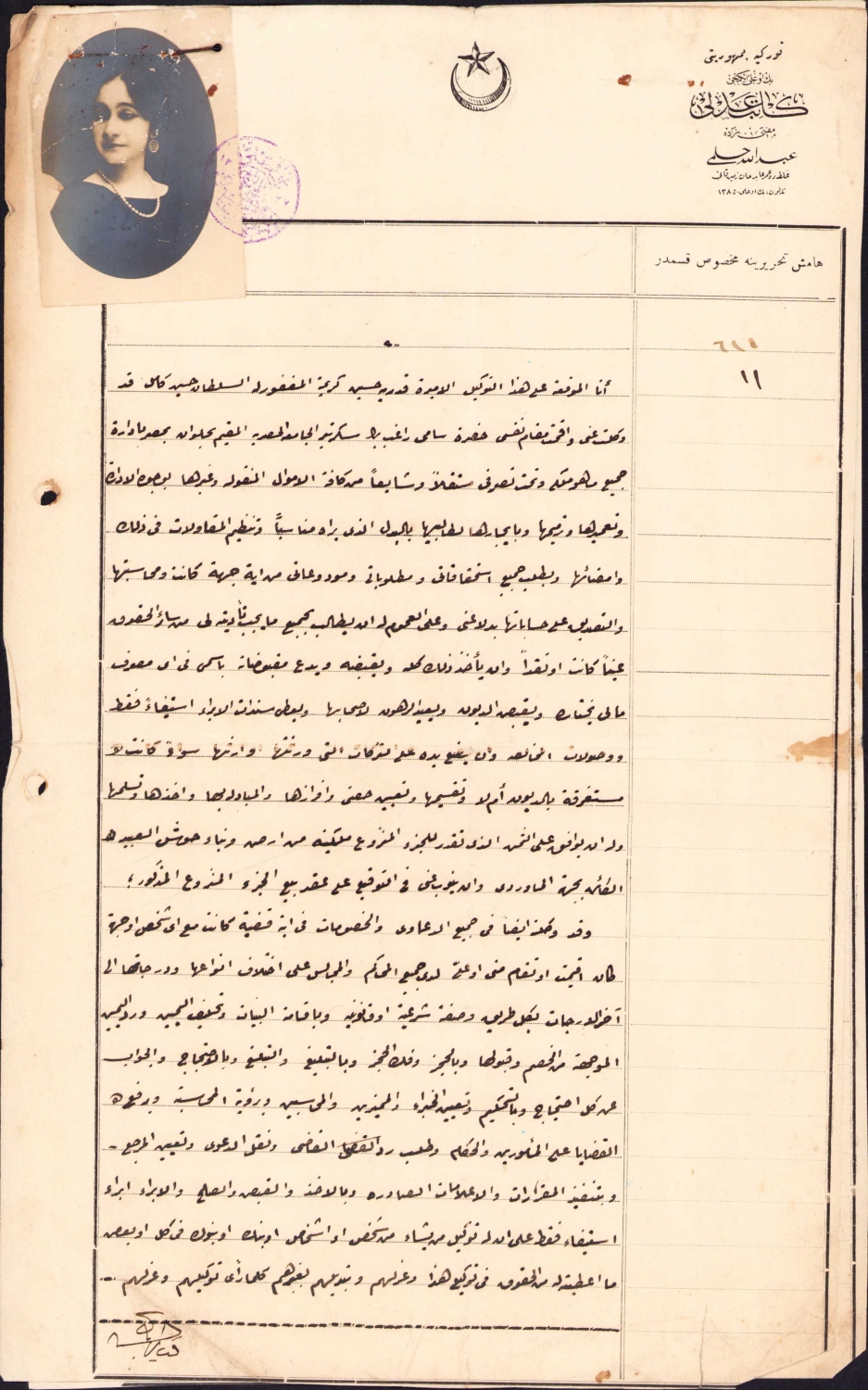 Osmanlıca Türkiye Cuhuriyeti Beyoğlu ikinci katip adli antetli Cumhurbaşkalığı köşkü eski sahibi prenses Kadriye Hüseyin hanımefendiye ait evrak