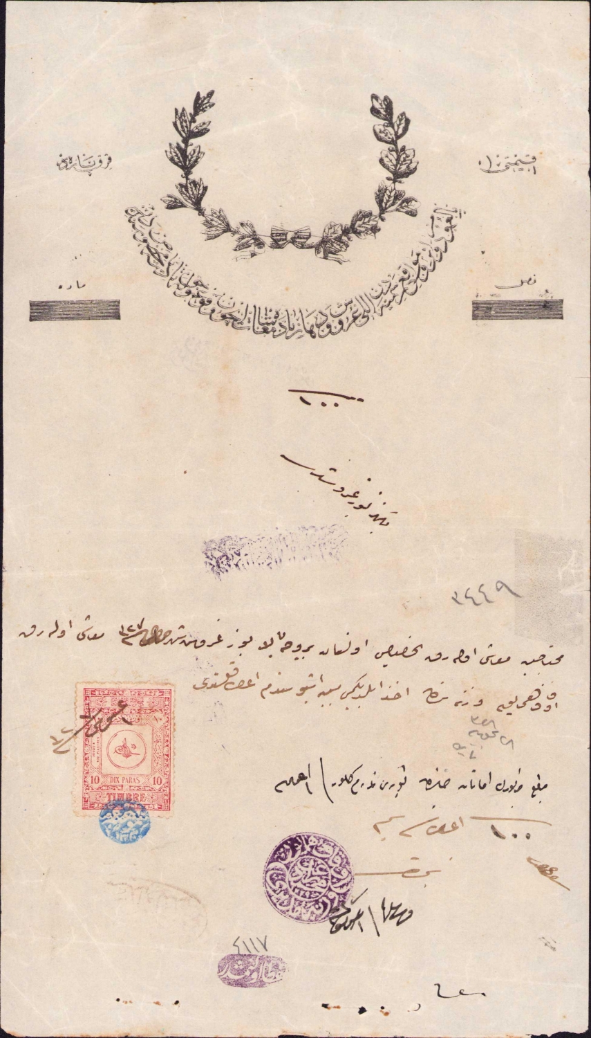 Osmanlıca senet, 1327 tarihli, 17x30 cm