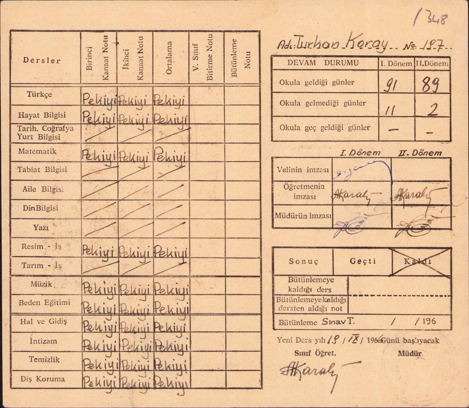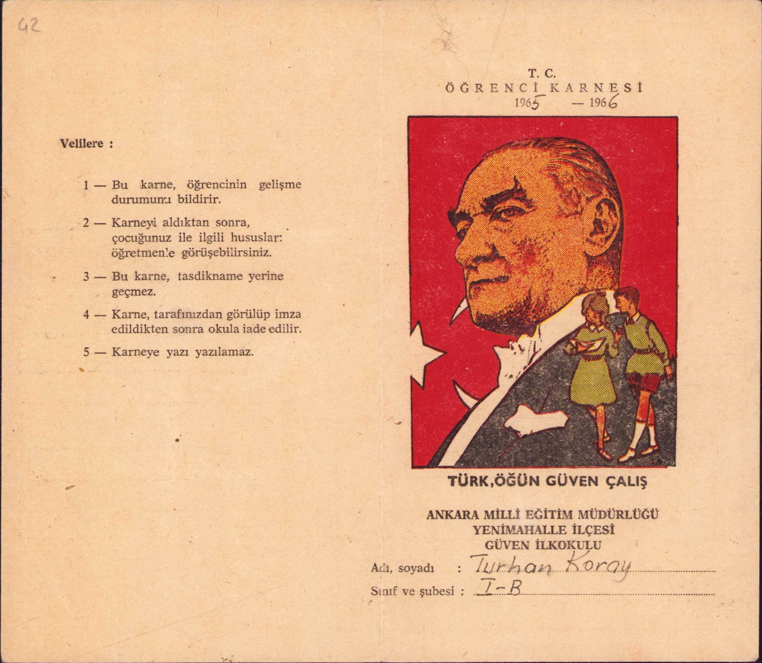 Atatürk görselli Öğrenci karnesi, 1966, 20x17 cm