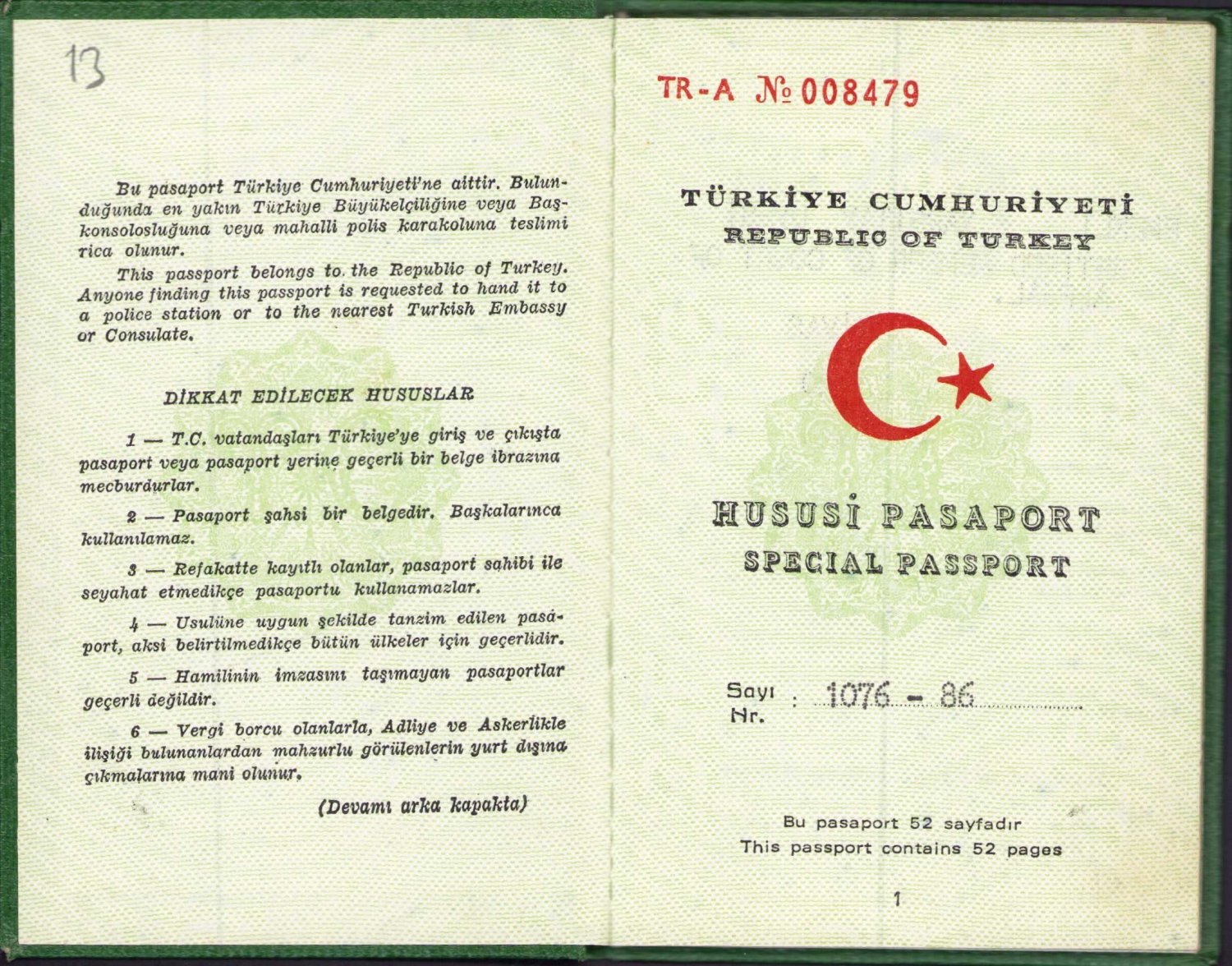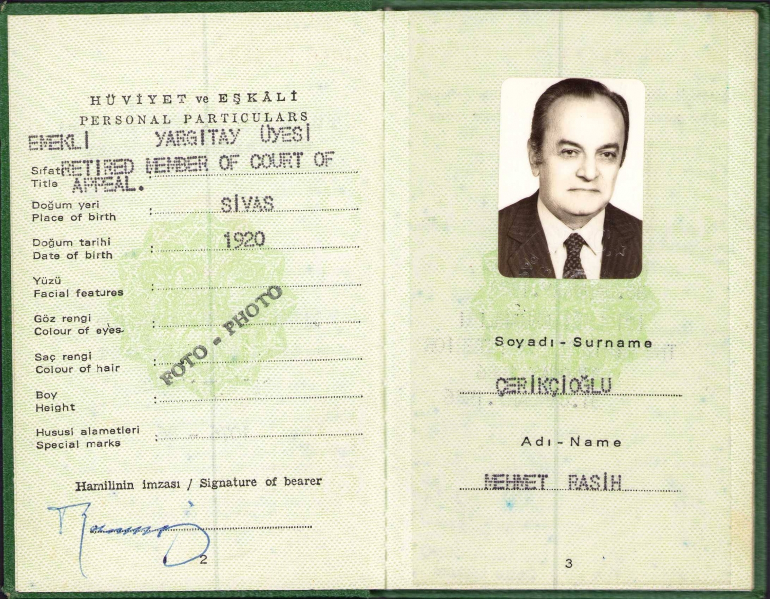 Emekli yargıtay üyesi Mehmet Rasih Çerikçioğlu'na ait 1986 tarihli pasaport, 10x14 cm
