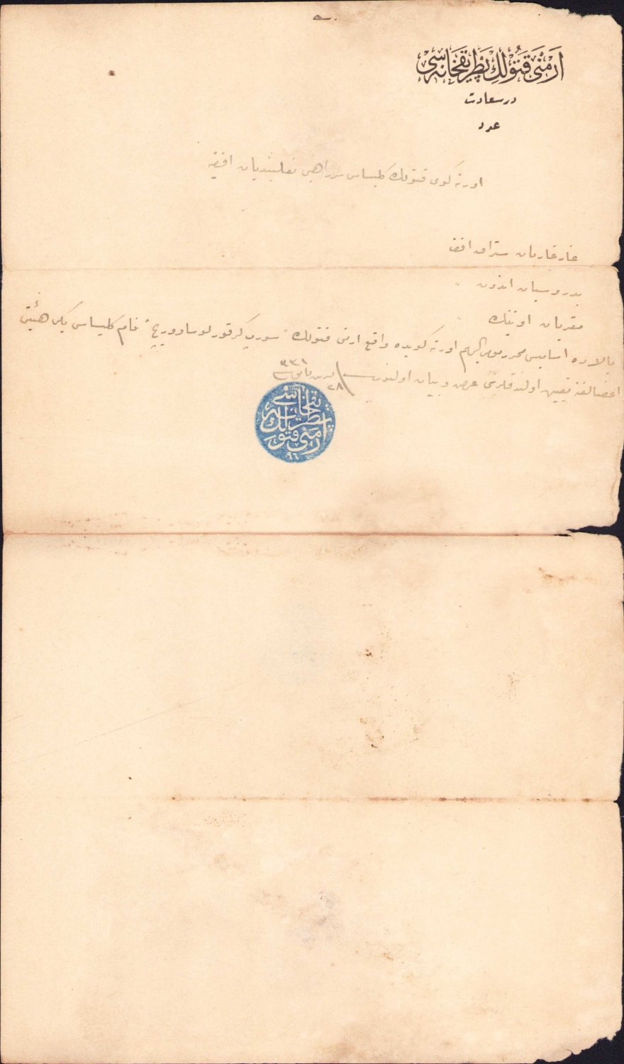 Osmanlıca Ermeni Katolik Patrikhanesi Dersaadet antetli nam kimselerin kilisenin yeni heyeti azalığına kabul edildiklerine dair evrak, 1321 tarihli evrak, 30x25 cm