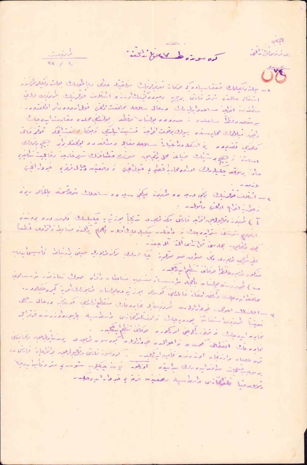 Osmanlıca Giresun 27. tabur kumandanlığına gönderilmiş harp raporu. Bolşeviklerin mevcut hareketlerini ve İtilaf kuvvetlerinin Trabzon sahil kesiminde taarruzları hakkında, 23x35 cm