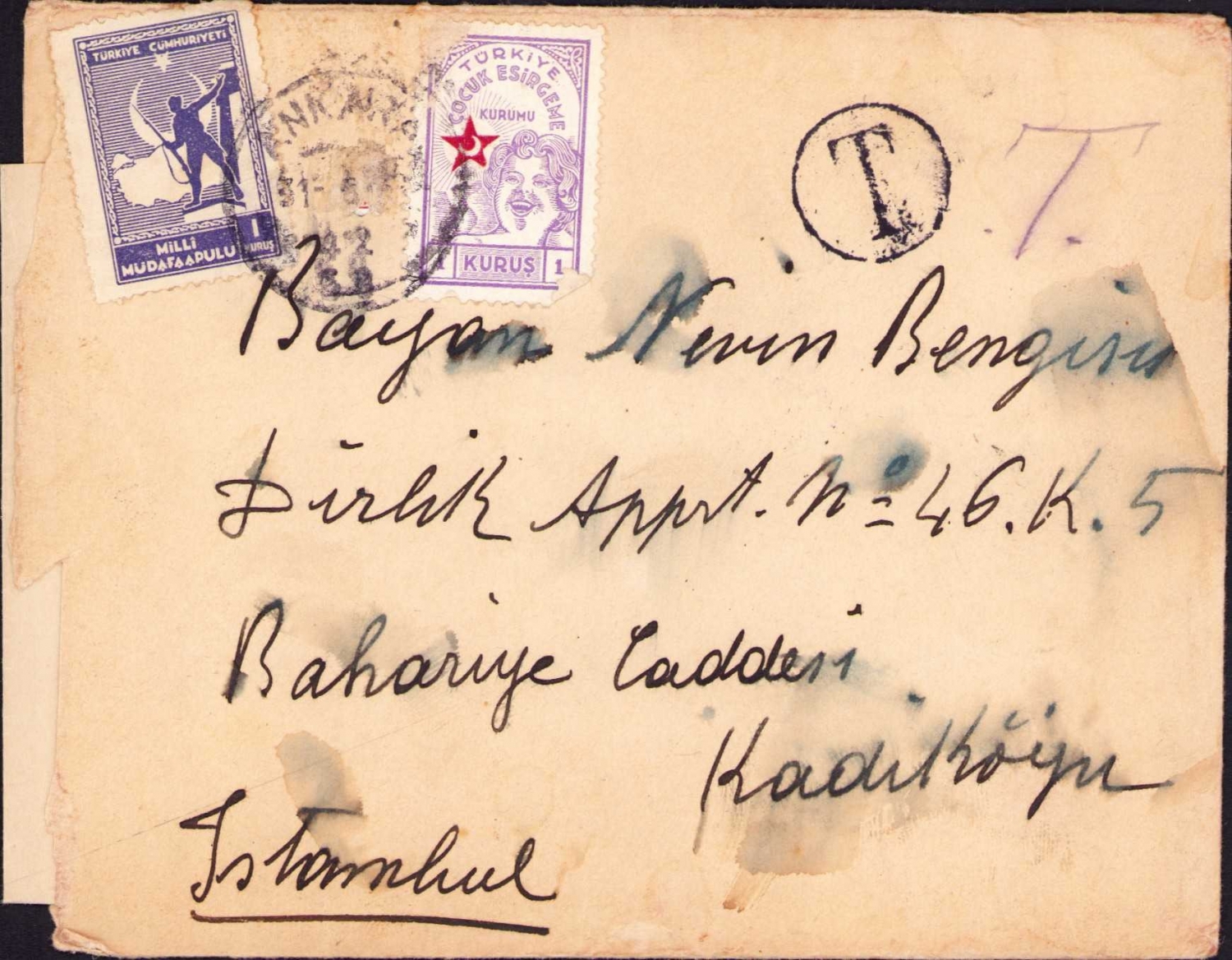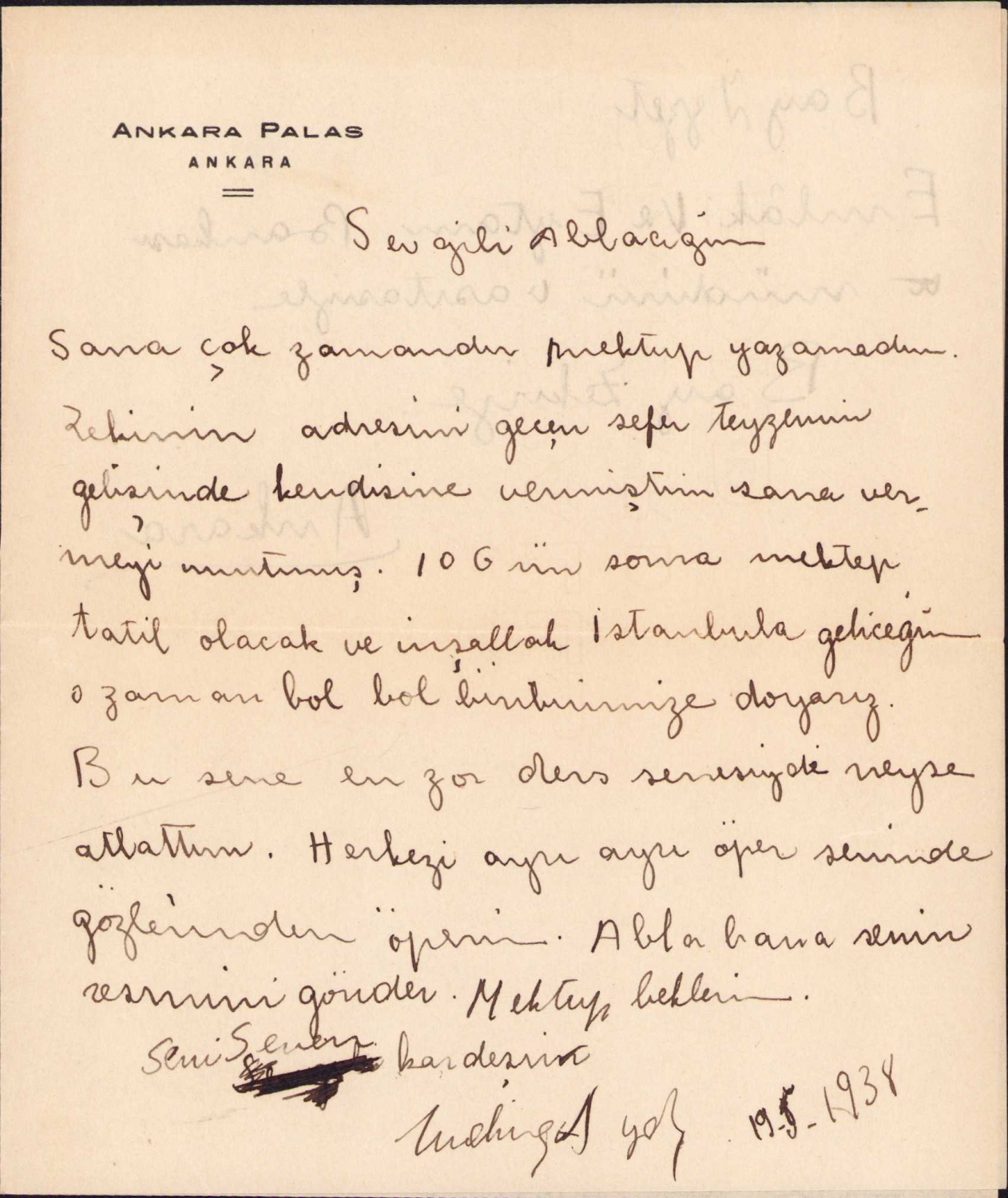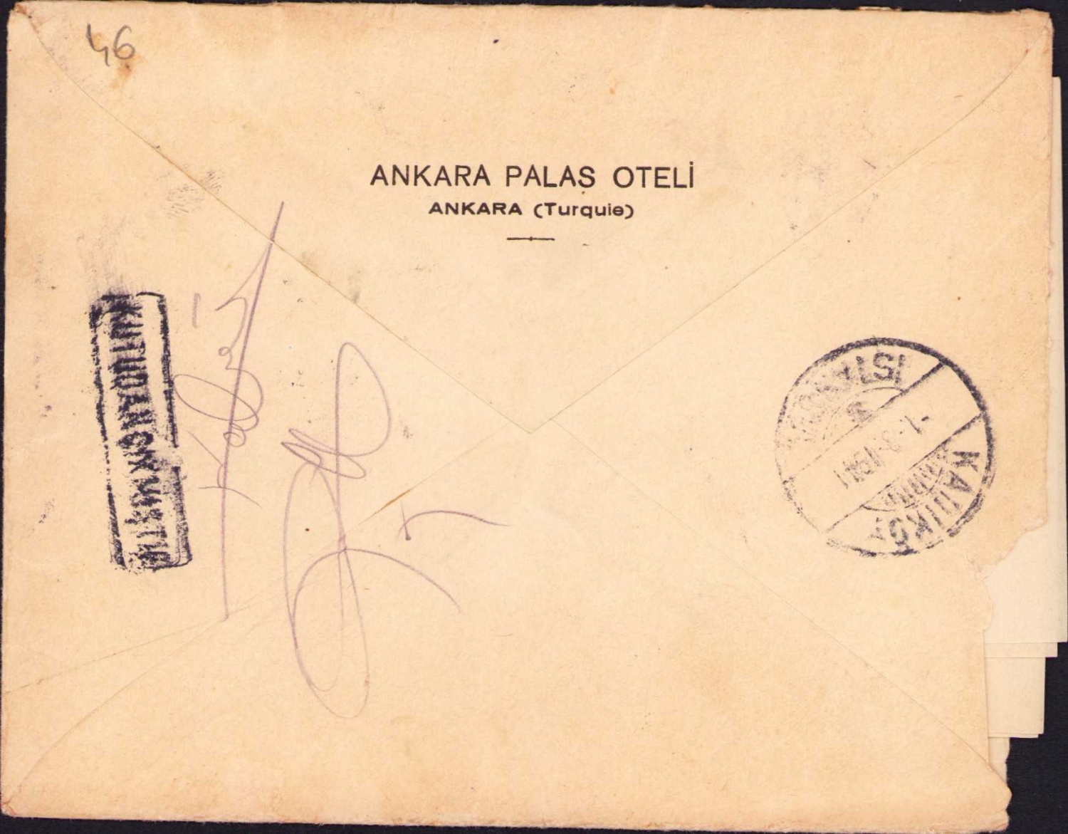 Ankara Palas Oteli antetli zarf ve mektup, 1938, postadan geçmiş, 14x16 cm