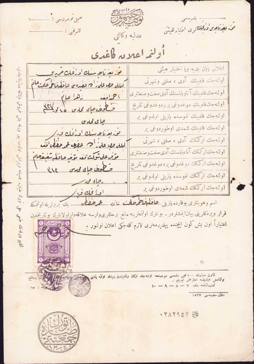 Osmanlıca evlenme ilanı kağıdı, 1928 tarihli, 16x24 cm