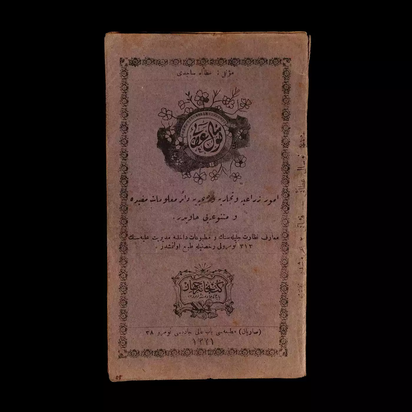 NEVSAL-İ ATAİ, Ataullah Sacidi, 1321, Sarıyan Matbaası, 74 sayfa, 10x18 cm...