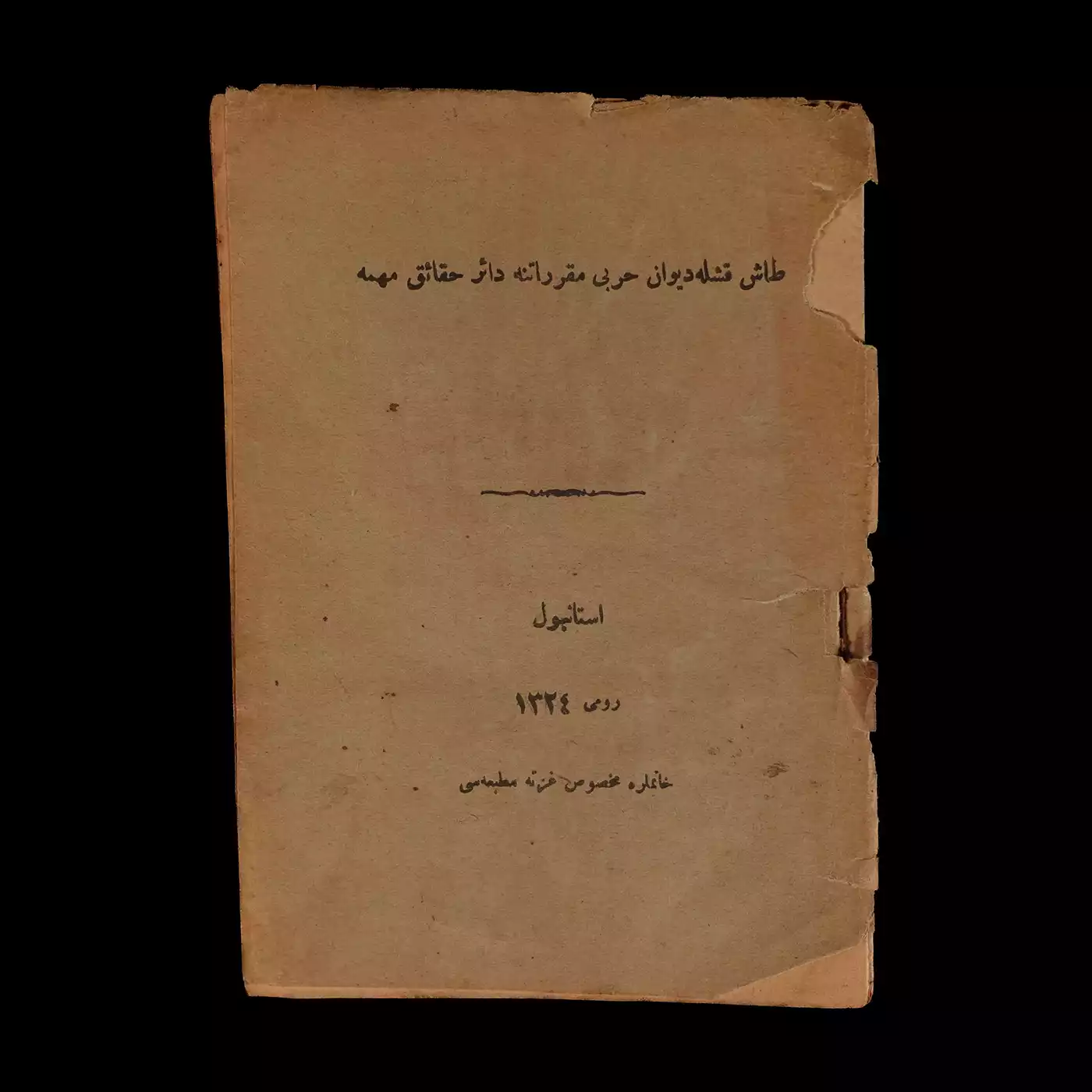 TAŞ KIŞLA DİVÂN-I HARBÎ MUKARRERÂTINA DAİR HAKAİK-İ MÜHİMME, Reşit Paşa, 1324, Hanımlara Mahsus Gazete Matbaası, 29 sayfa, 13x18 cm...