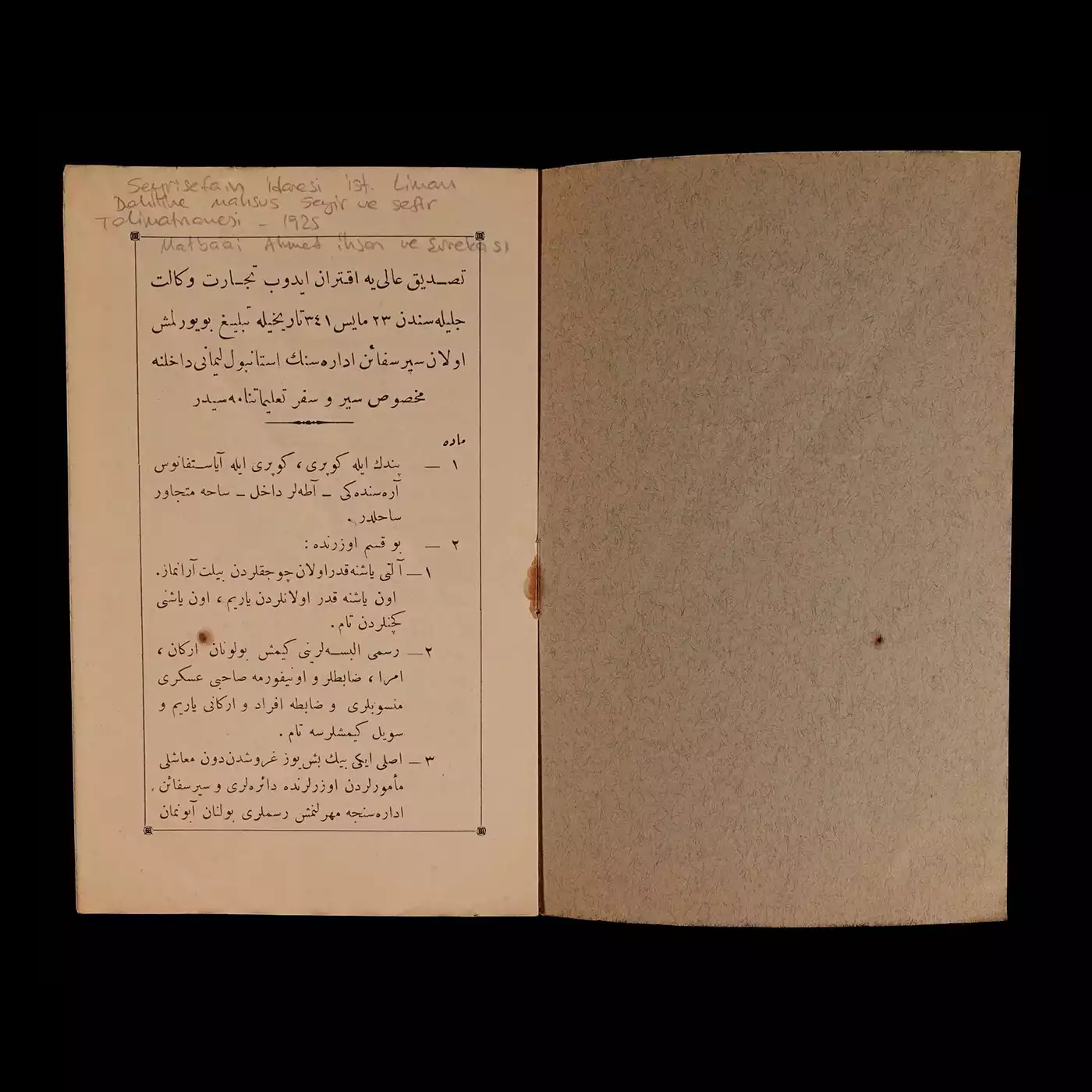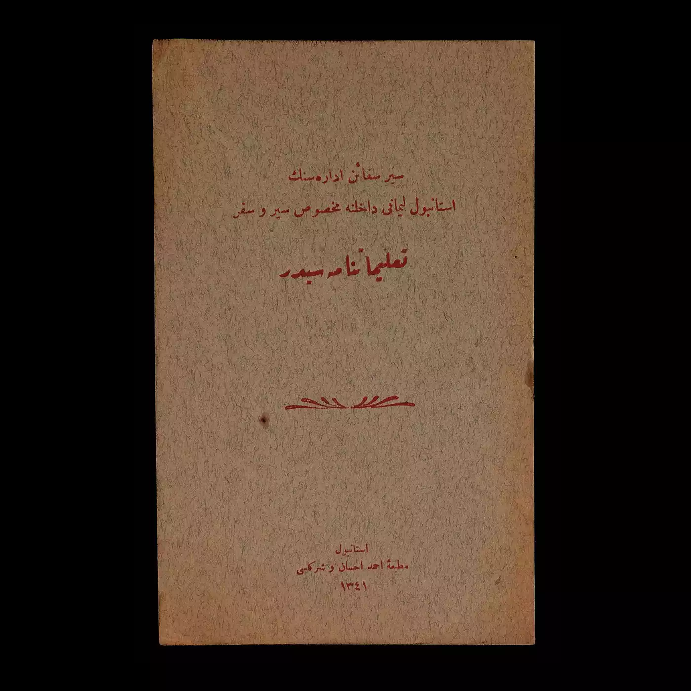 SEYR-İ SEFAİN İDARESİ´NİN İSTANBUL LİMANI DAHİLİNE MAHSUS SEYİR VE SEFER TALİMATNAMESİ, 1341, Matbaa-i Ahmet İhsan ve Şürekası, 4 sayfa, 12x19 cm...