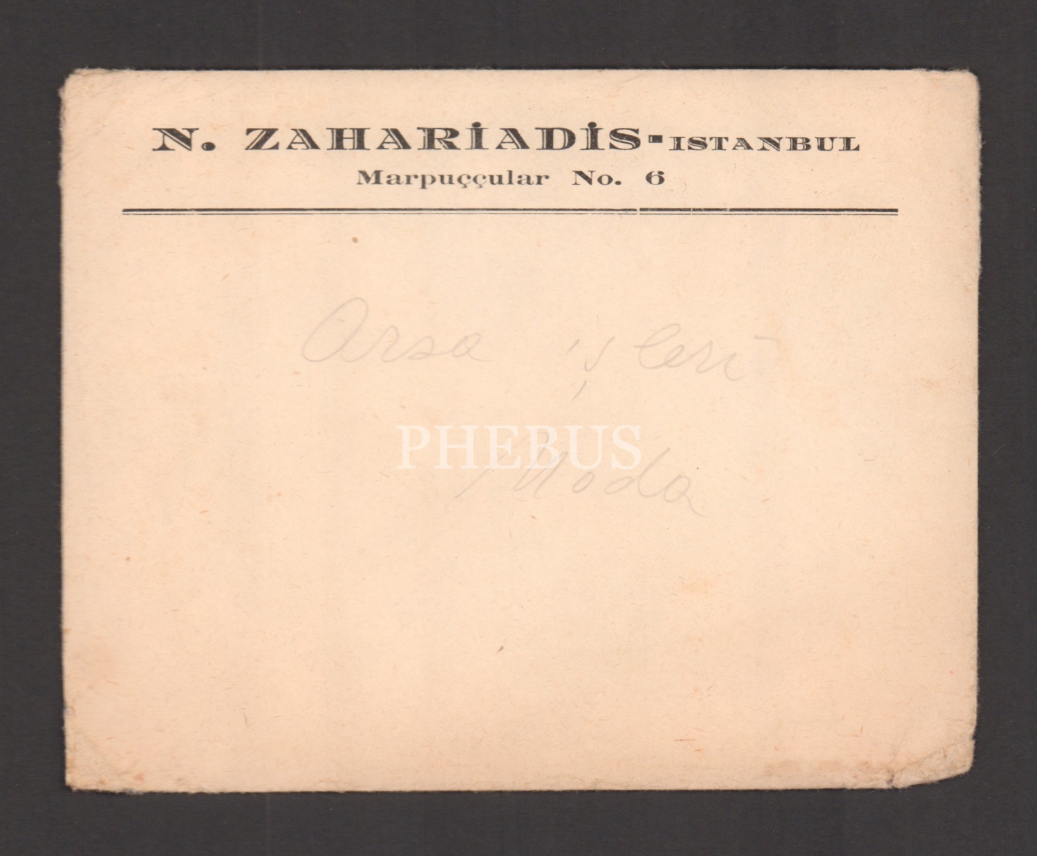 Zaharyades’e ait, “N. ZACHARİADİS – ISTANBUL – Marpuççular No. 6” antetli zarf...