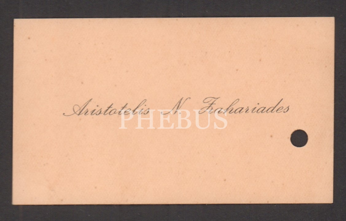 “Aristotelis N. Zahariades” yazılı kartvizit...