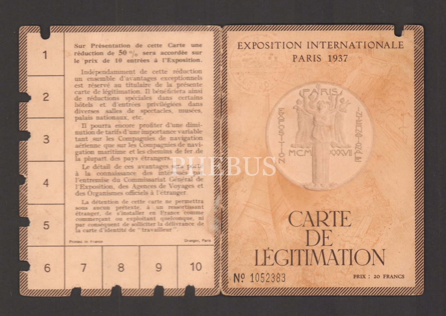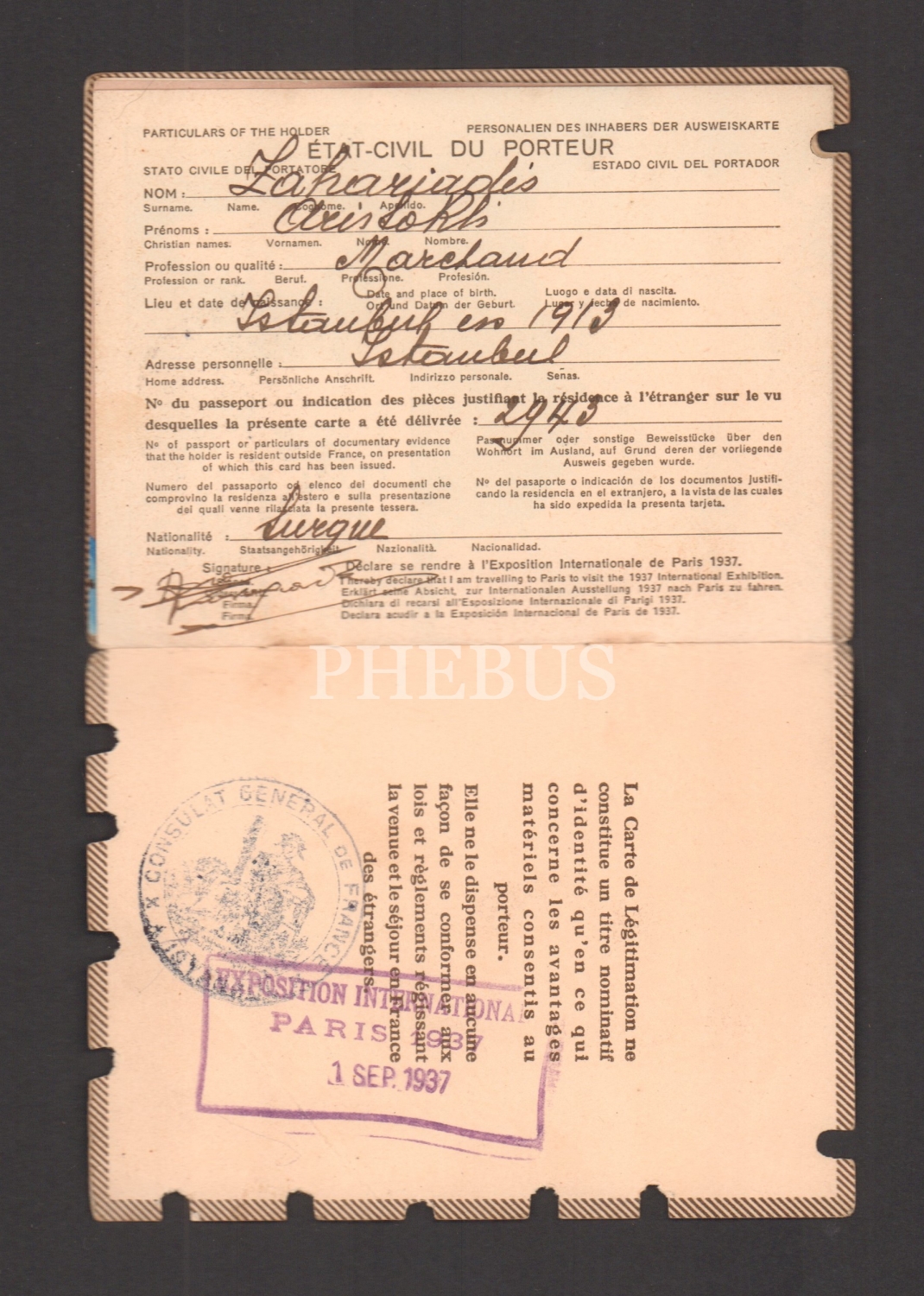 Aristotelis Zahariades’e ait, 1937 Paris Uluslarası Sergisi resmi giriş kartı...