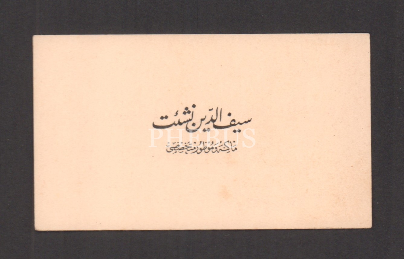 "Seyfeddin Neşet – Makine ve Motor Mühendisi" yazılı, Osmanlıca kartvizit...