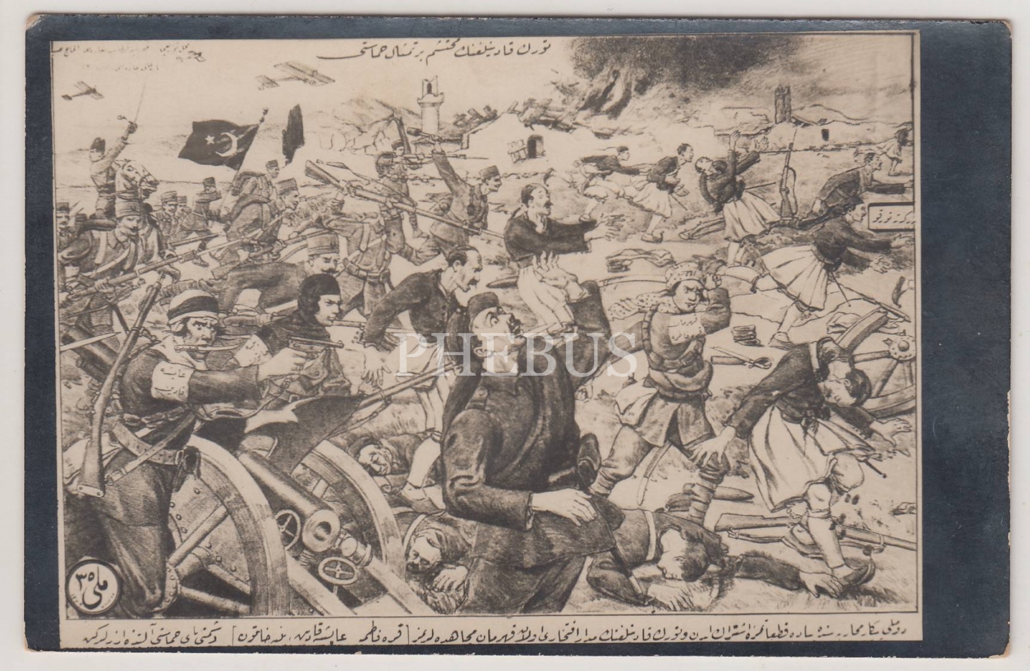 "Türk kadınlığının muhteşem bir timsal-i hamaseti: Dumlupınar Muharebesi´nde sadakatımıza iştirak eden ve Türk kadınılığının medar-ı iftiharı olan kahraman mucahidelerimiz düşmanı ezerlerken." yazılı Kurtuluş Savaşı mefkure kartpostalı.