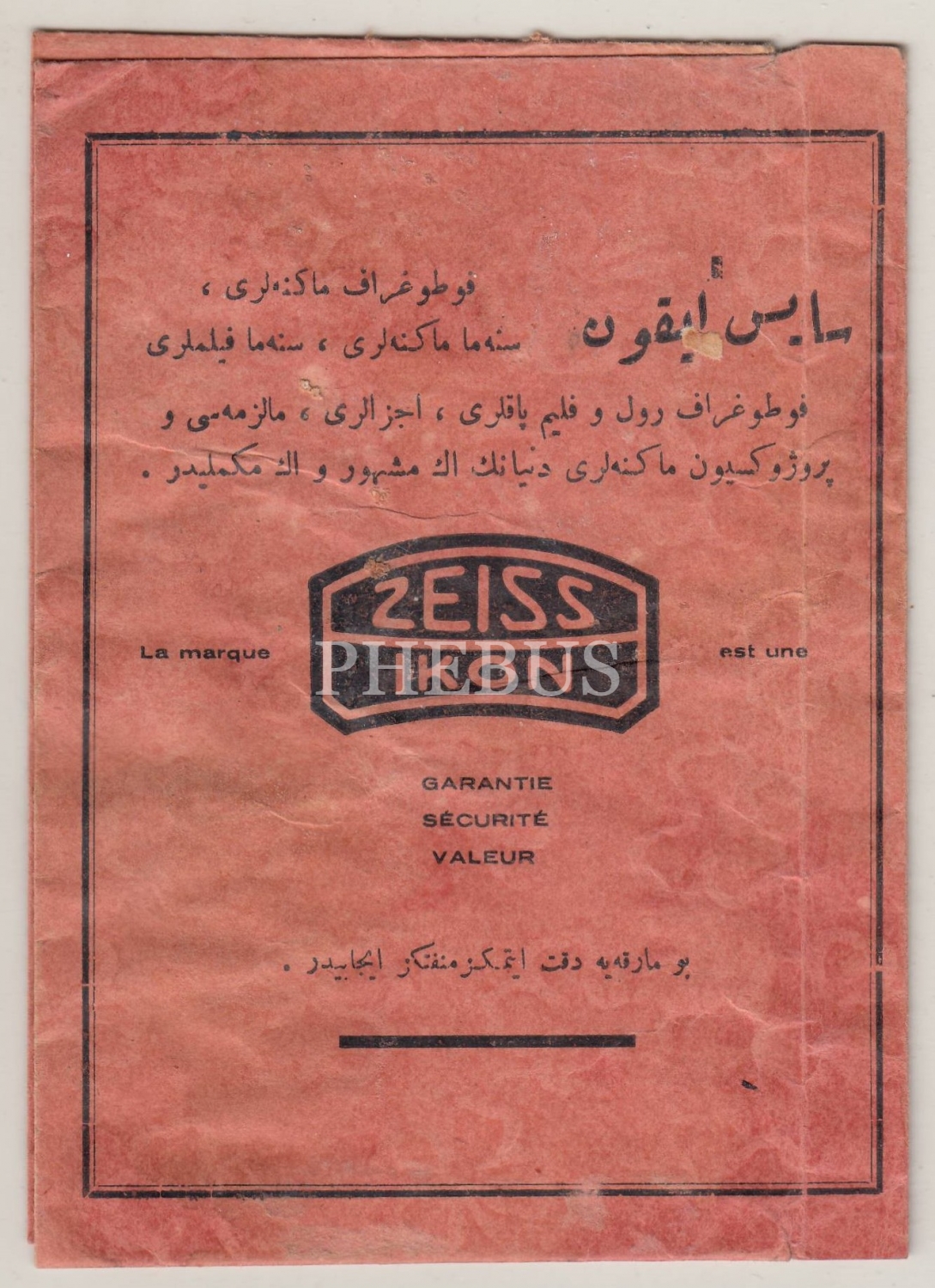 Osmanlıca ve Fransızca "Zeiss Ikon" reklamlı fotoğraf zarfı...