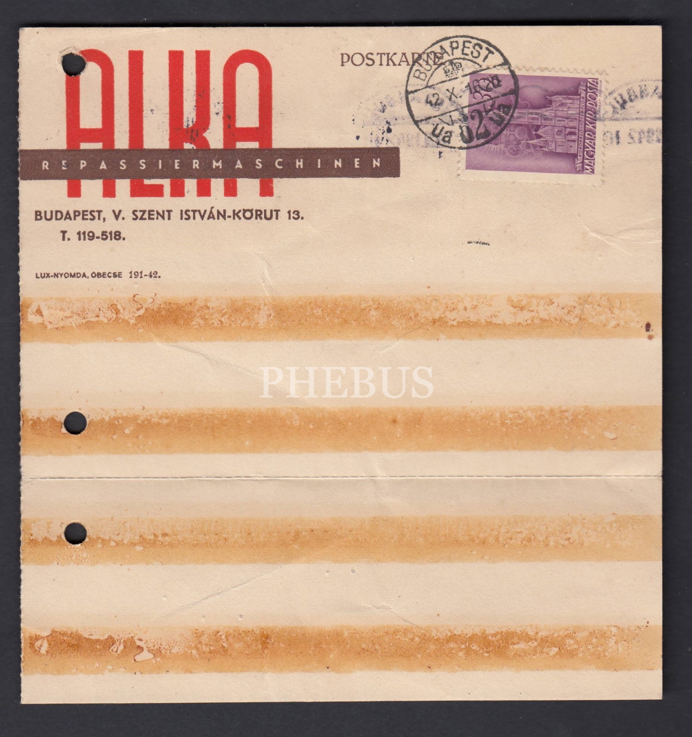 Ekim 1942 tarihli, Budapeşte´den (Macaristan) A. Zahariadis´e gönderilmiş "Alka - Repassiermaschinen" antetli mektup...