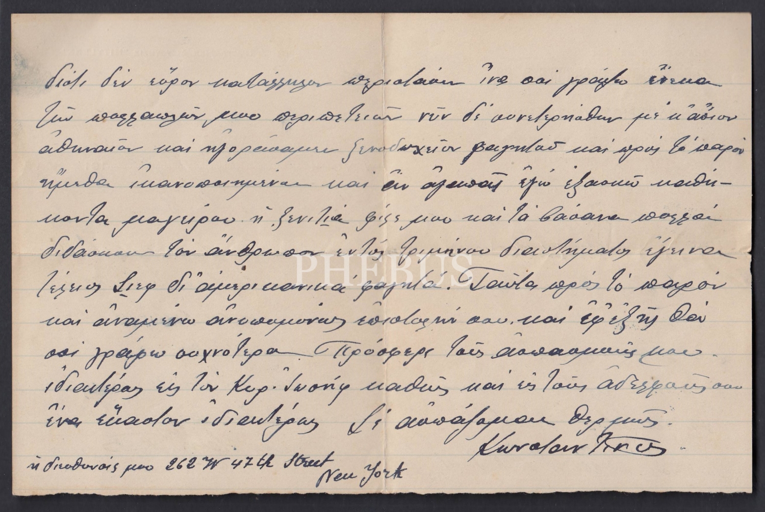 1911 yılında "Gregoriades Cocordile & Co." antetli, "Mitylene Oteli ve Thessalonike Cafe´si - Doğu Ürünlerinin Ticareti ve Tedariği" yazılı, New York´tan gönderilmiş Rumca mektup...