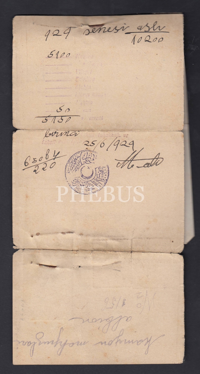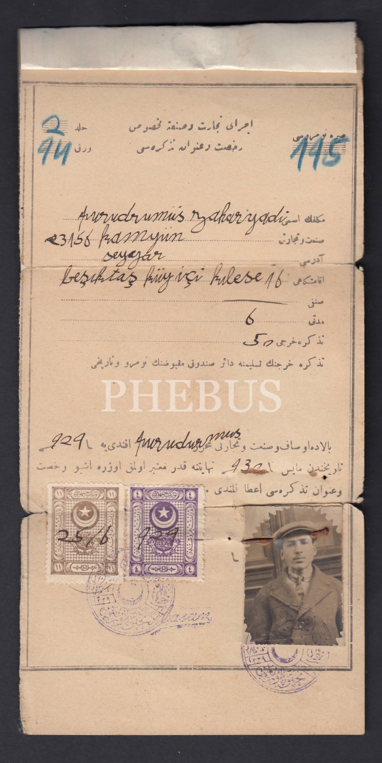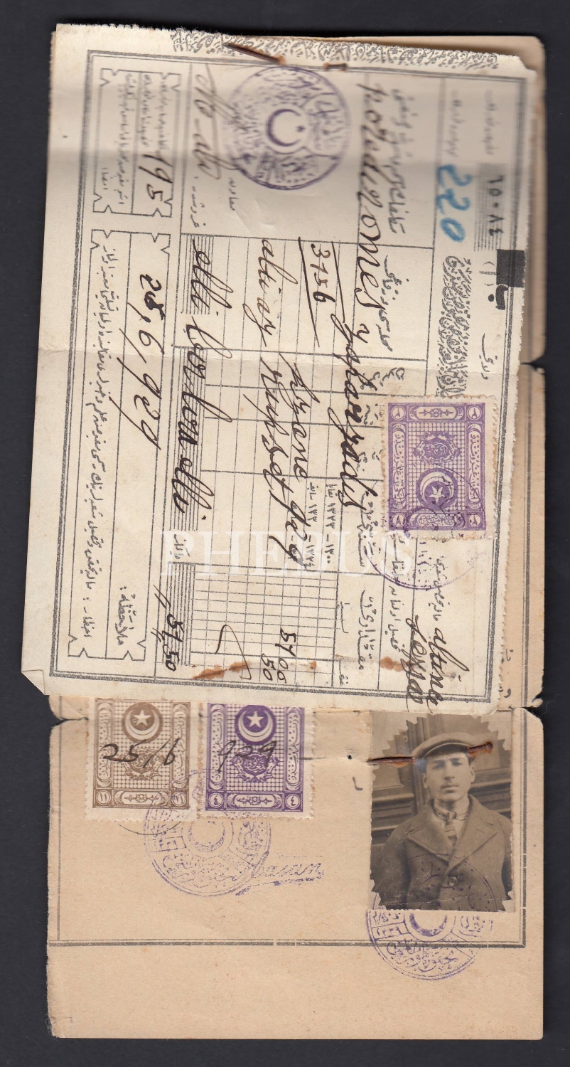 25 Haziran 1929 tarihli, Prodromes Zahariadis´e ait fotoğraflı "İcra-yı Ticaret ve Sanata Mahsus Ruhsat ve Unvan Tezkiresi" ve 51 lira 50 kuruşluk makbuzu...