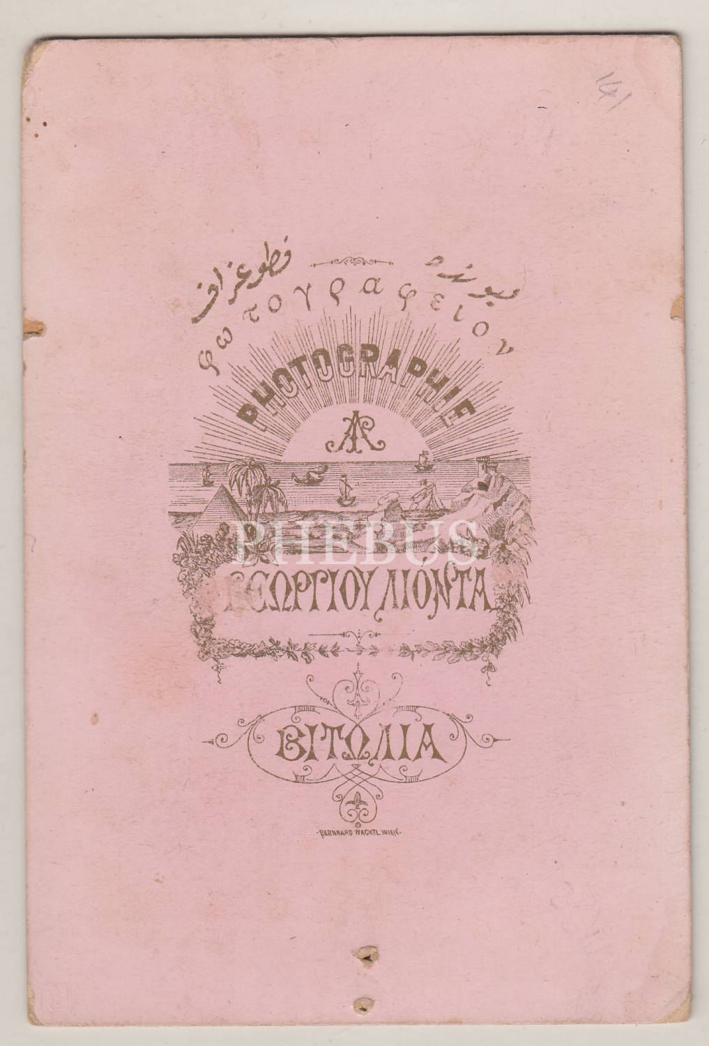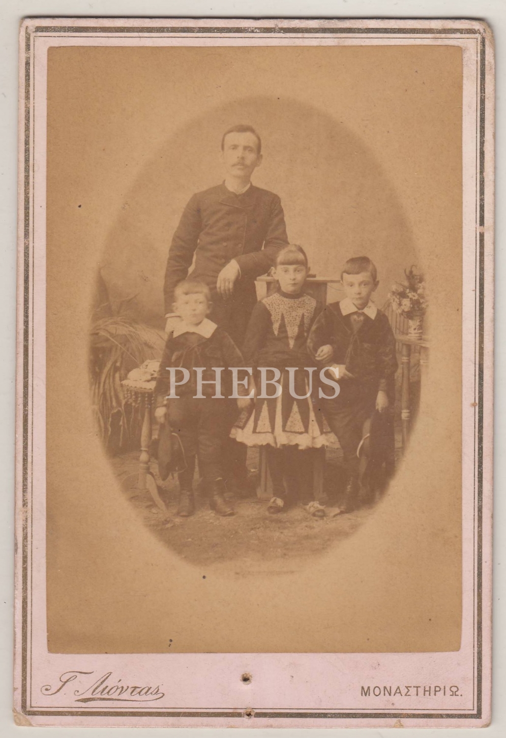 Osmanlı döneminden, bir öğretmen ve üç öğrencisinin kabin fotoğrafı, Bitola´da (Manastır) Liontas Fotoğrafhanesi, 16x11 cm...
