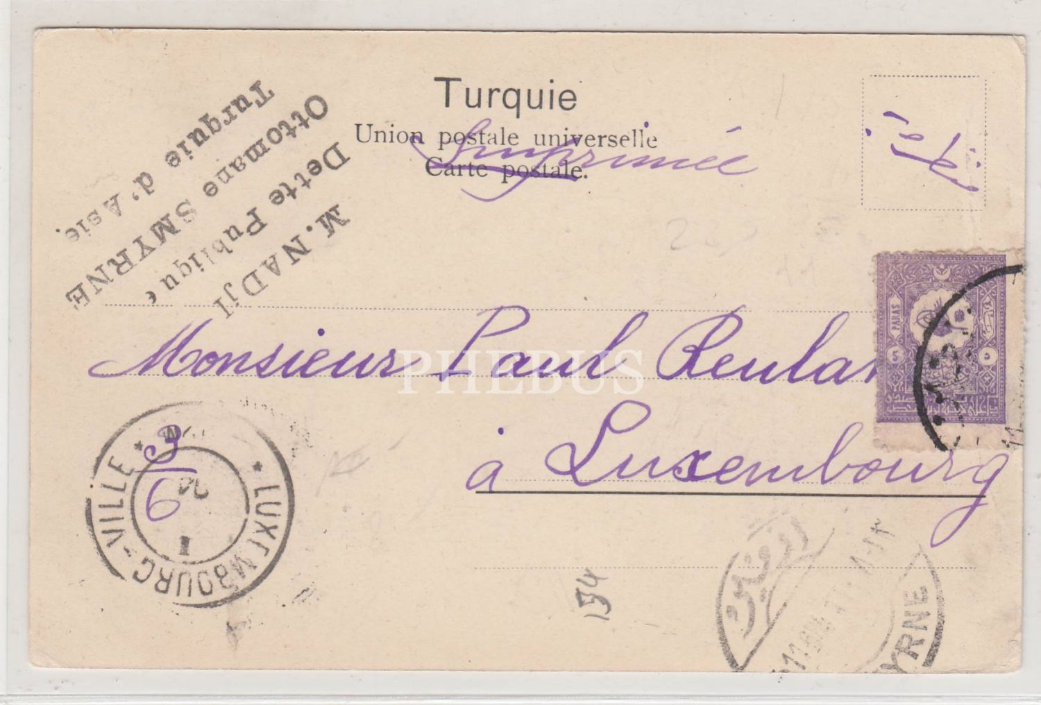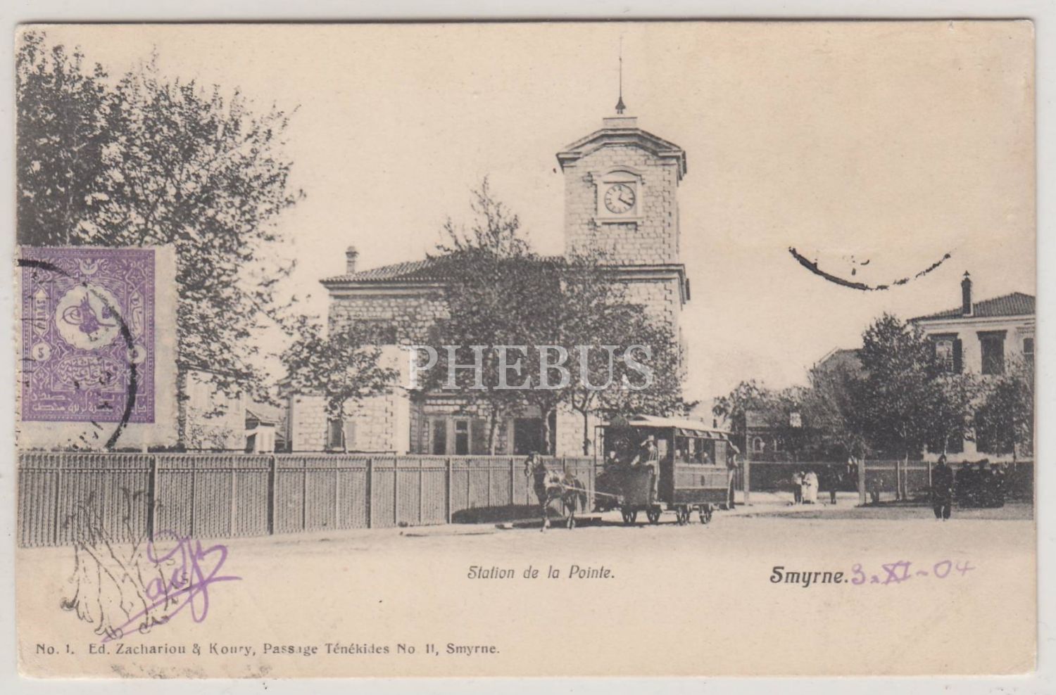 Editör: Zachariou ve Koury. İzmir İstasyonu, postadan geçmiş kartpostal. "Arka yüzü M. Nacci - Osmanlı İzmir Türkiye" kaşeli. 14x9 cm...