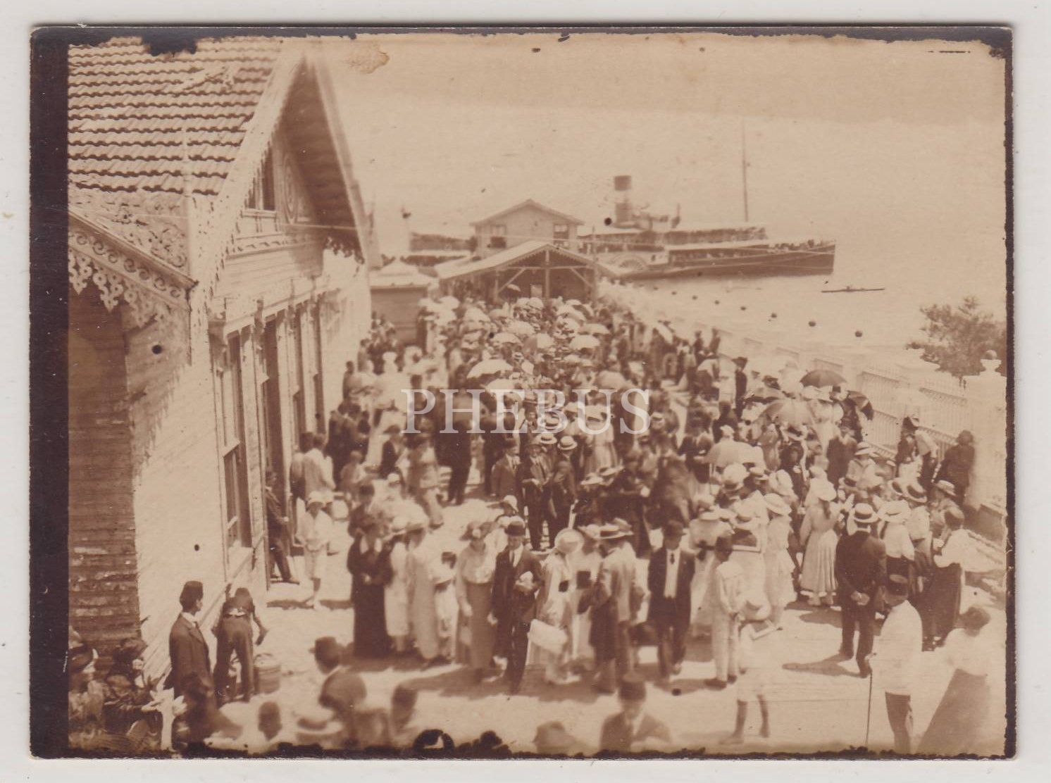 Osmanlı döneminde, Büyükada İskelesi´nde insanlar ve buharlı gemi fotoğrafı, 11x9 cm...