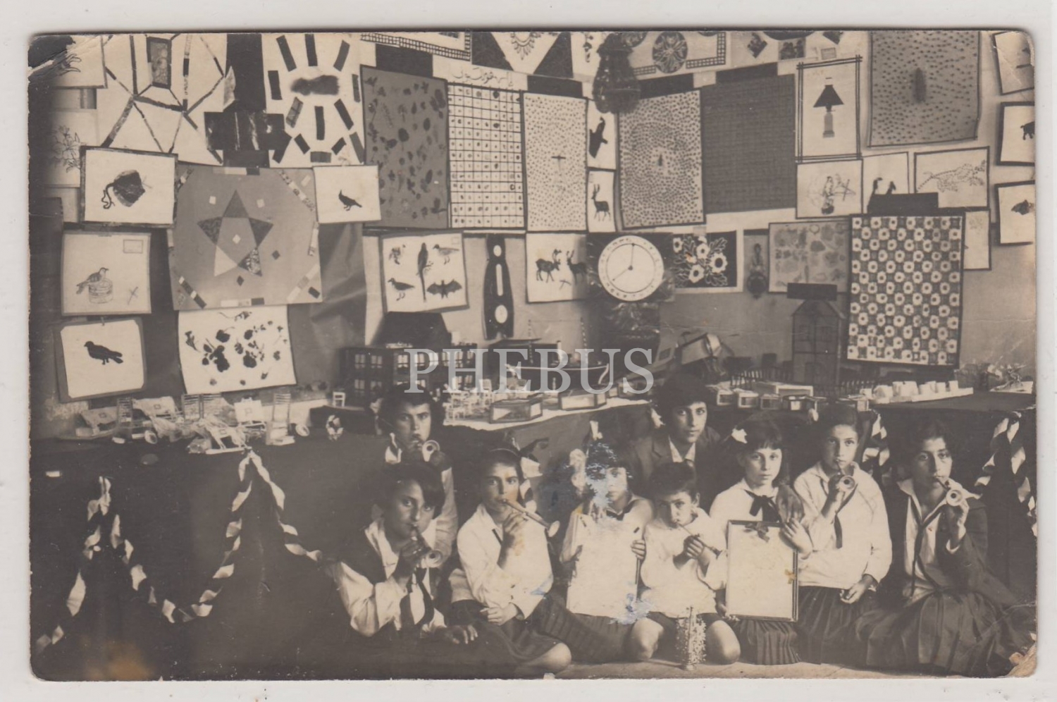 Çocuk Esirgeme Kurumu öğenci ve öğretmenlerinin toplu hatıra fotoğrafı, 14x9 cm...