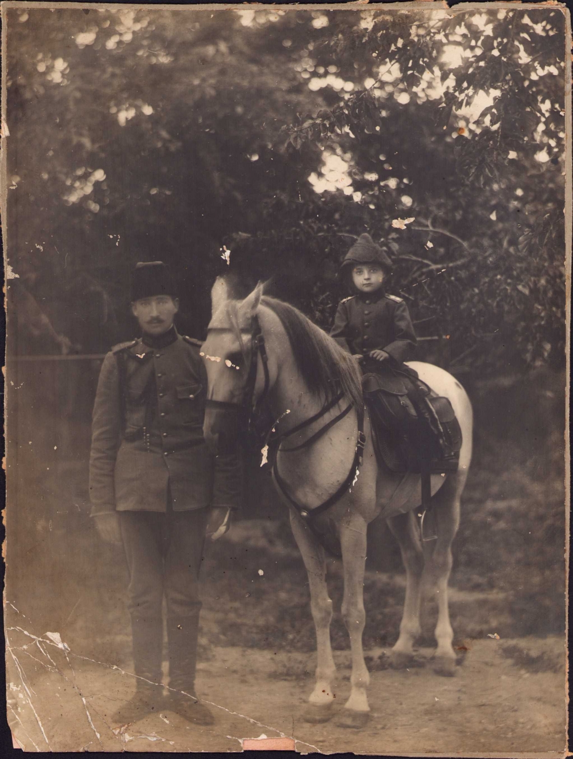 Osmanlı dönemi at üstünde üniformalı çocuk, bir kenarı kırık, 16x21 cm