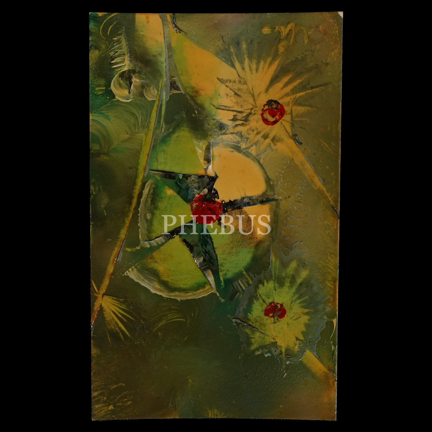Metin Eloğlu´nun fırçasından yağlı boya çiçek çizimi, 9x14 cm...