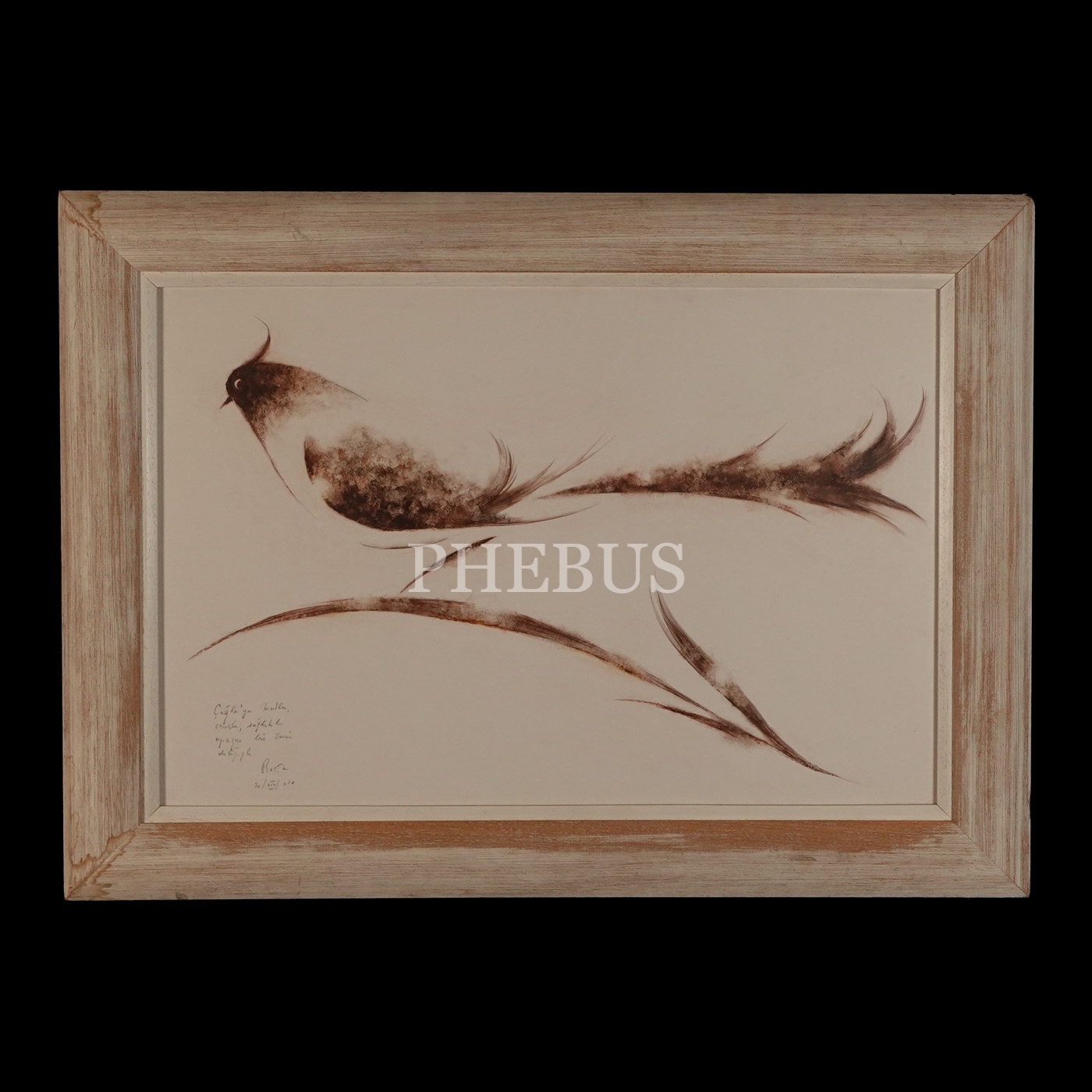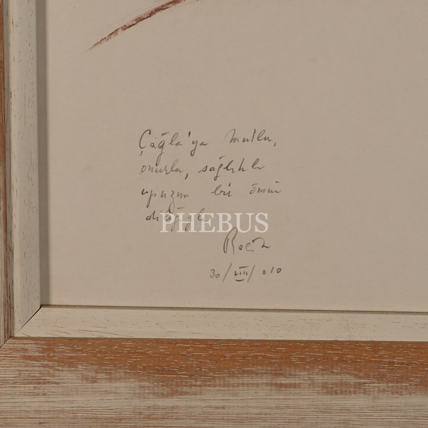 Rasin Arsebük´ten ithaflı ve imzalı güvercin resmi, 2010 tarihli, çerçevesiyle birlikte 84x62 cm...