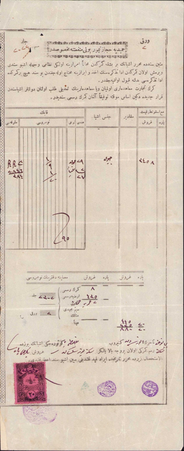 Osmanlıca Hamidiye Hicaz Demiryolu gümrük resmiye senedi, 1321 tarihli, 16x36 cm