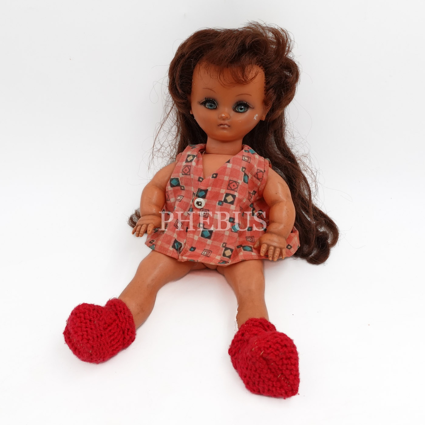 Fransız malı, "Bella" marka plastik bebek, oynar gözlü ve patikli, 28x6x4 cm...