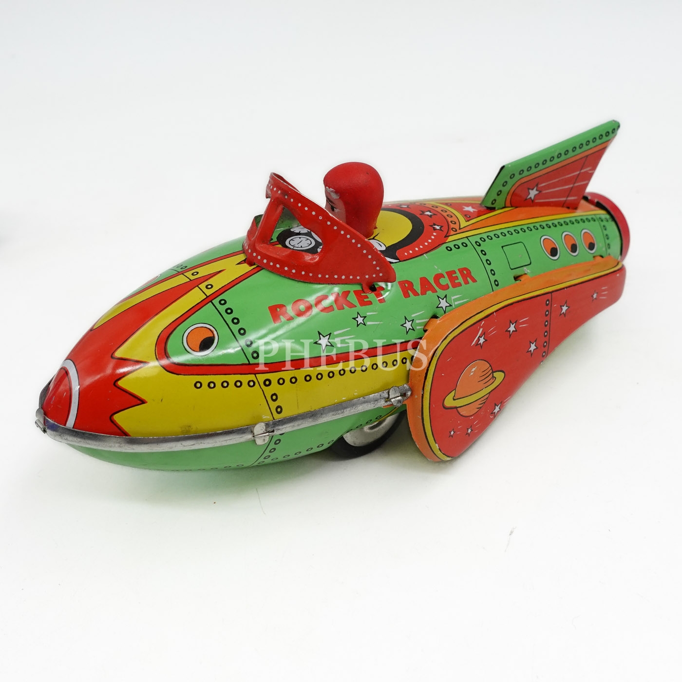 Orijinal kutusunda Schylling Collector Series Tin Toy üretimi Rocket Racer model uzay aracı, kutu 20x8x8 cm, model 19x8,5x6 cm...