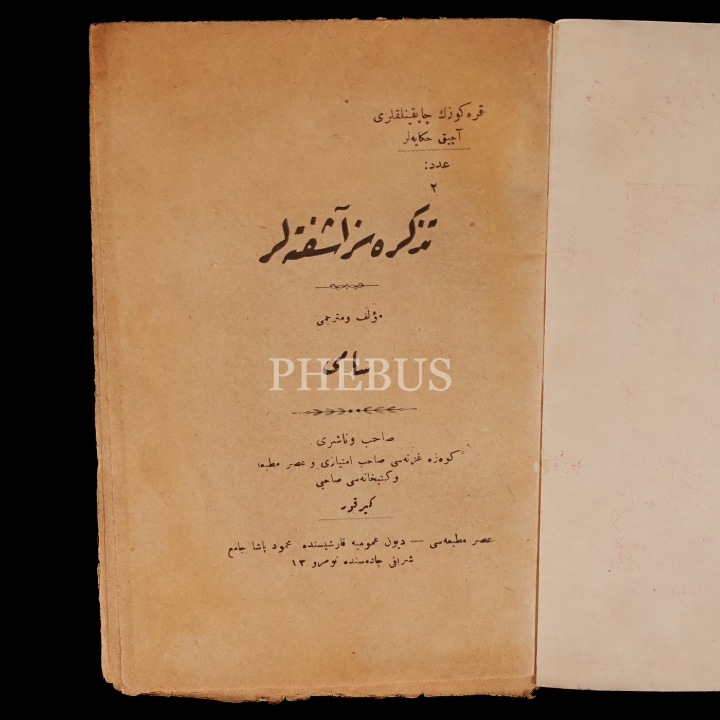 TEZKİRESİZ AŞİFTELER, Sami, Asır Matbaası, 31 sayfa, 14x20 cm...