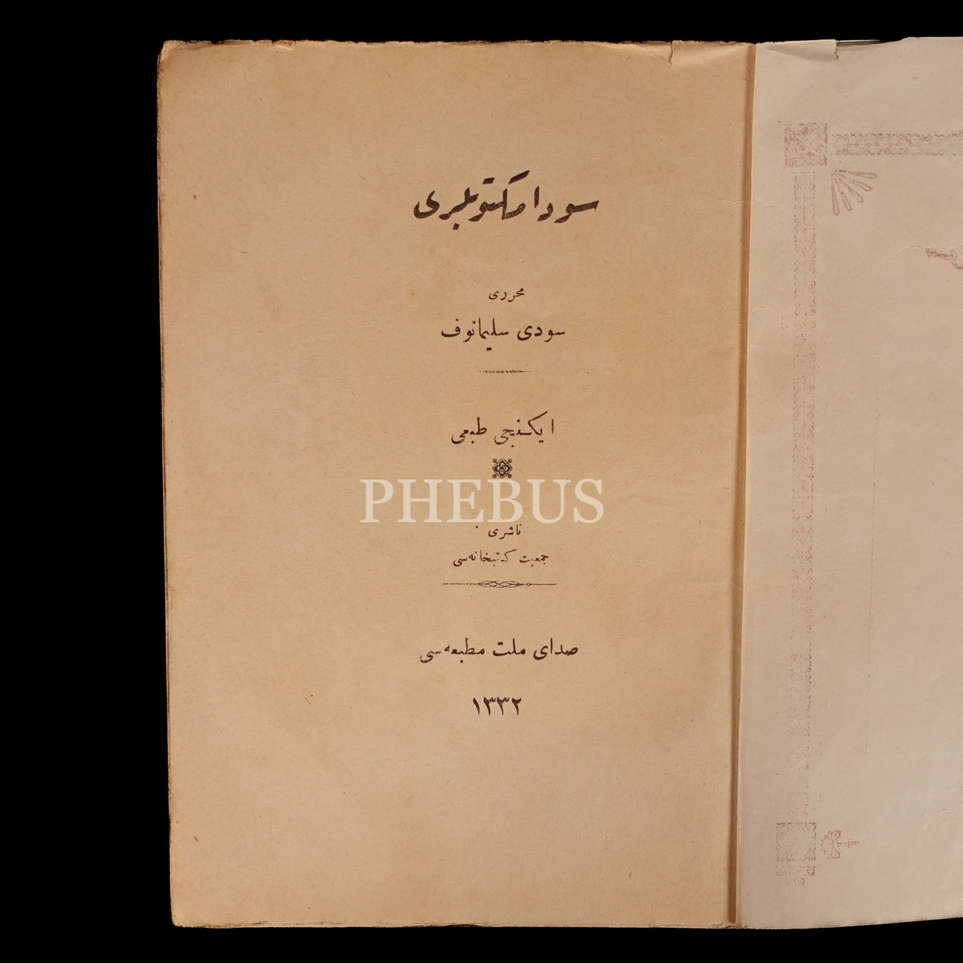 SEVDA MEKTUPLARI, Sudi Süleymanof, 1332, Cemiyet Kütüphanesi, 48 sayfa, 14x20 cm...