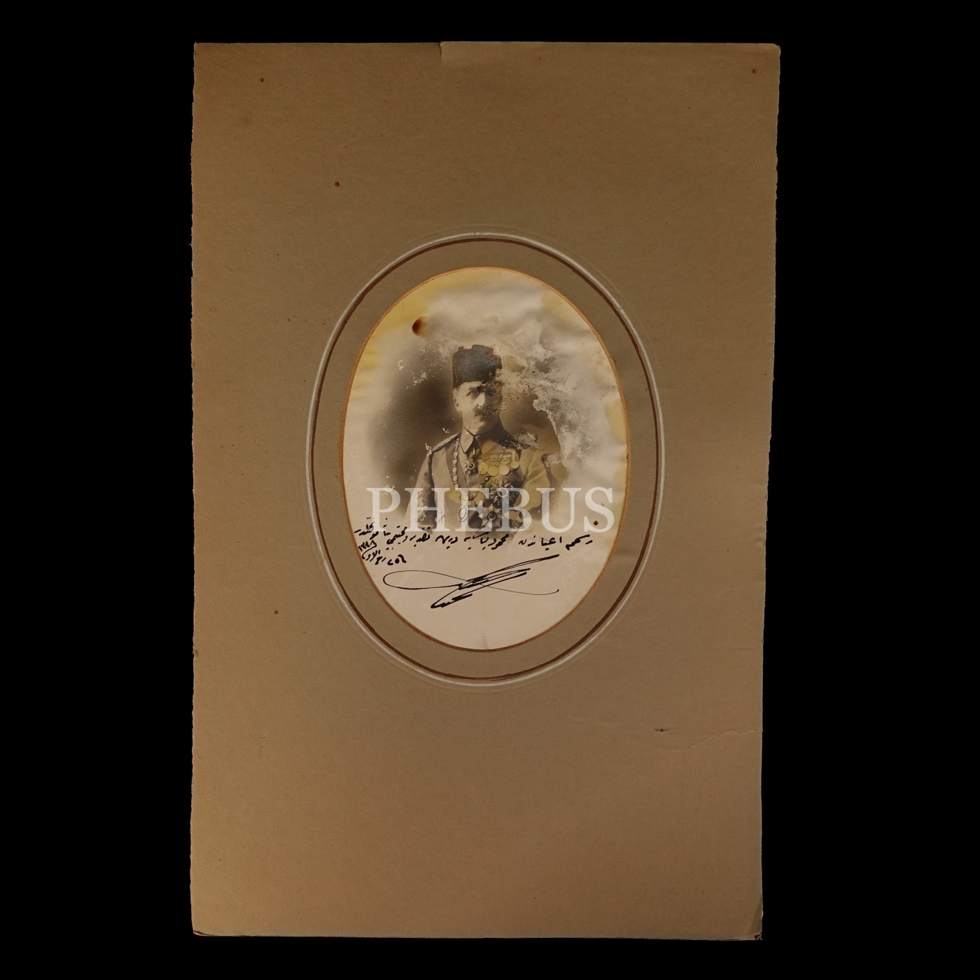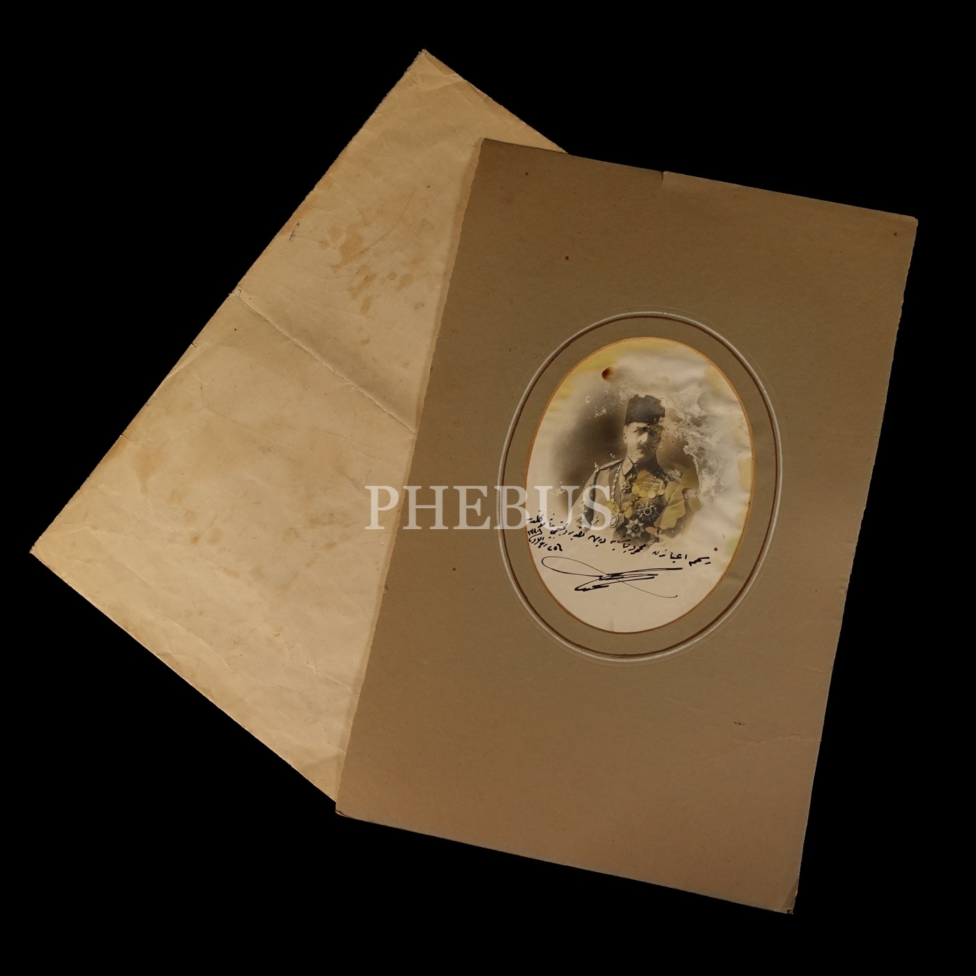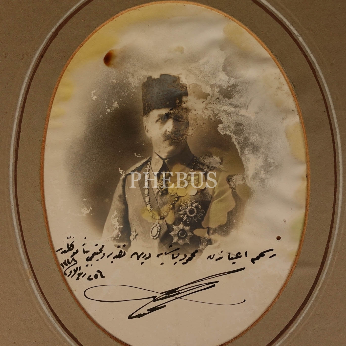 Halife Abdülmecid´in ithaflı ve imzalı stüdyo hatıra fotoğrafı, 25 Rebiulevvel 1338, paspartusuyla birlikte 32x50 cm...