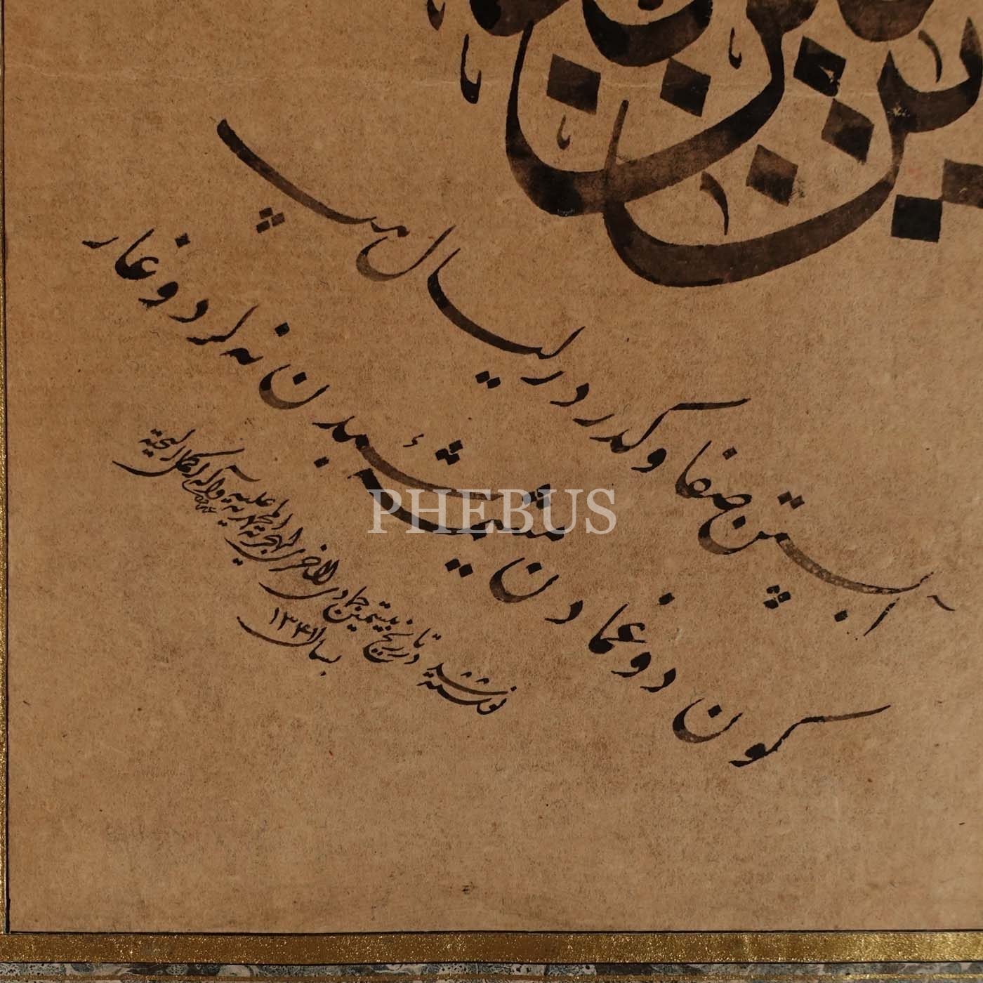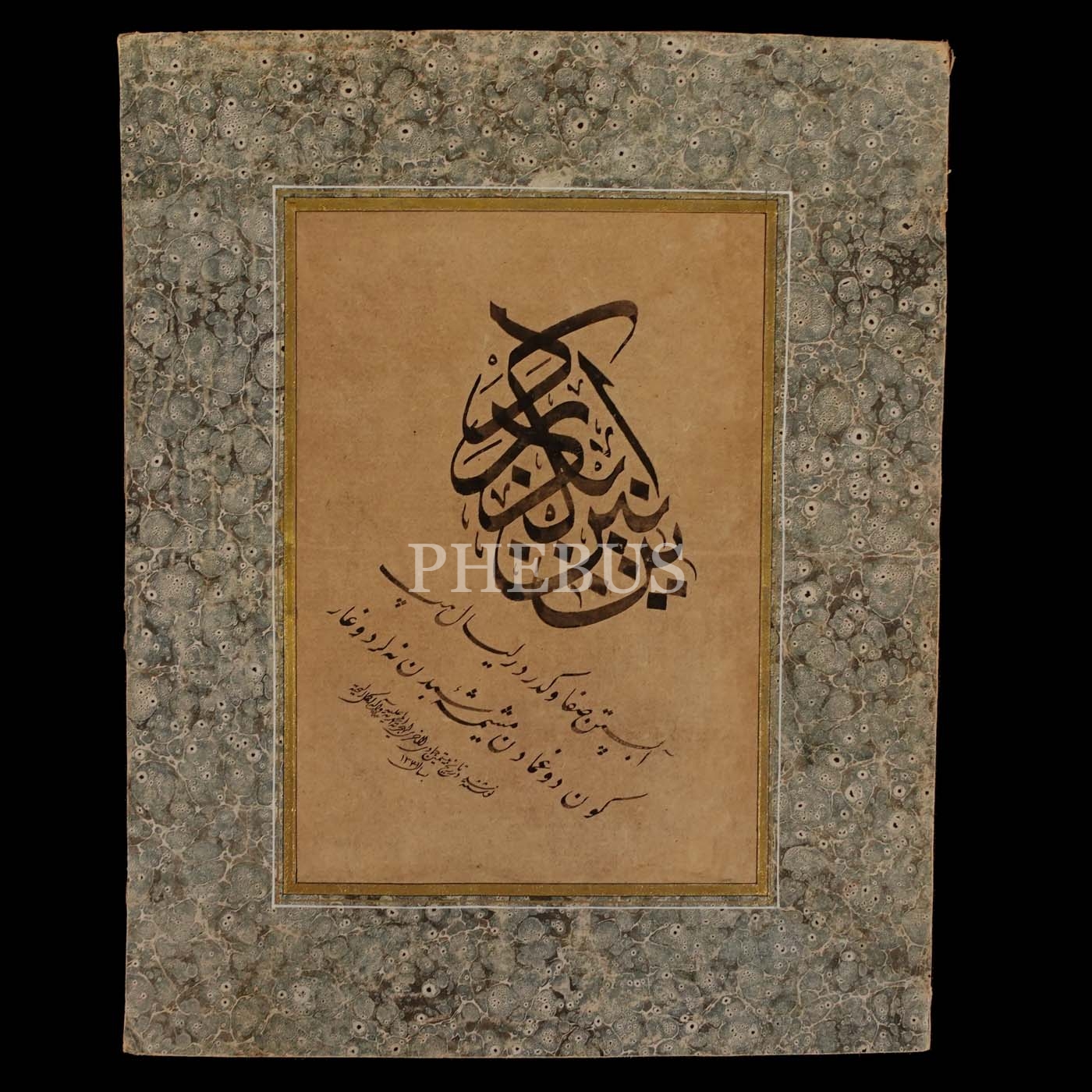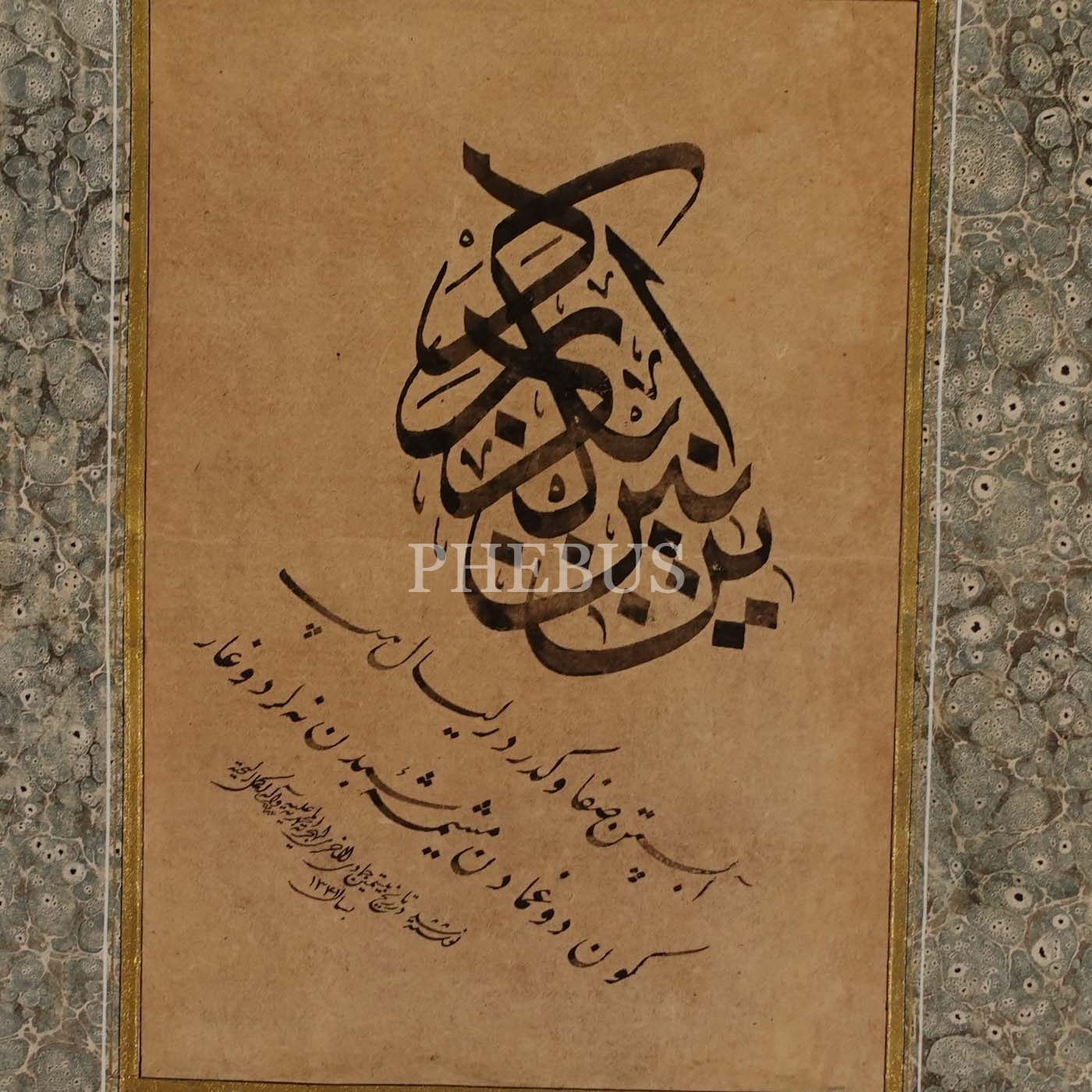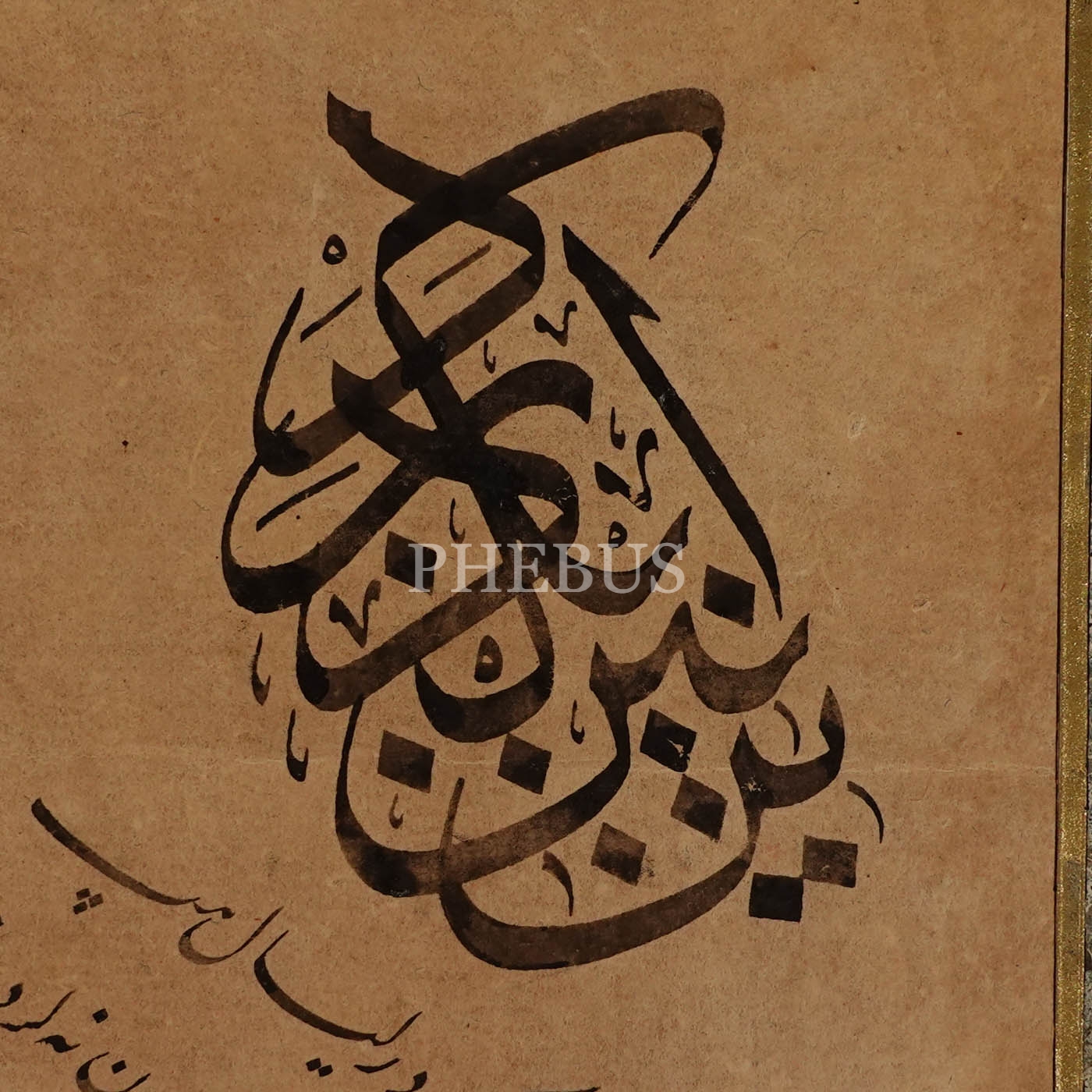 Topçuzade Mehmet Arif ketebeli, Celi sülüs istif ve ta´lik mail kıt´a, 1341, 24x30 cm...